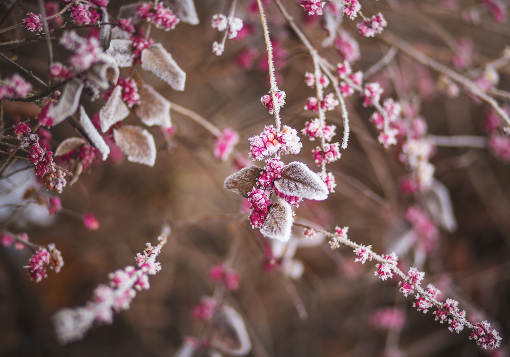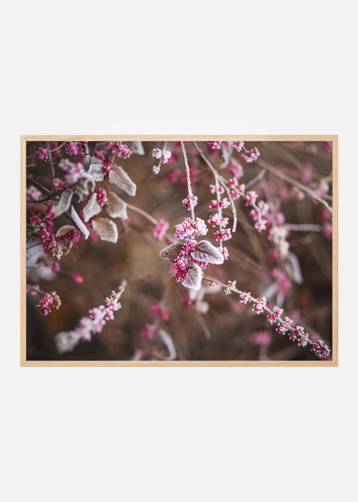 Fotografie s detailním pohledem na jinovatkou pokryté růžové plody s malou hloubkou ostrosti. Tisk s plody v růžové barvě a s pozadím v čokoládových tónech navozuje teplý a útulný pocit. Ve větší velikosti s pěkným rámem se obraz stává středem pozornosti v obývacím pokoji nebo umístěte menší variantu do koláže obrazů spolu s dalšími plakáty ve stejných odstínech.