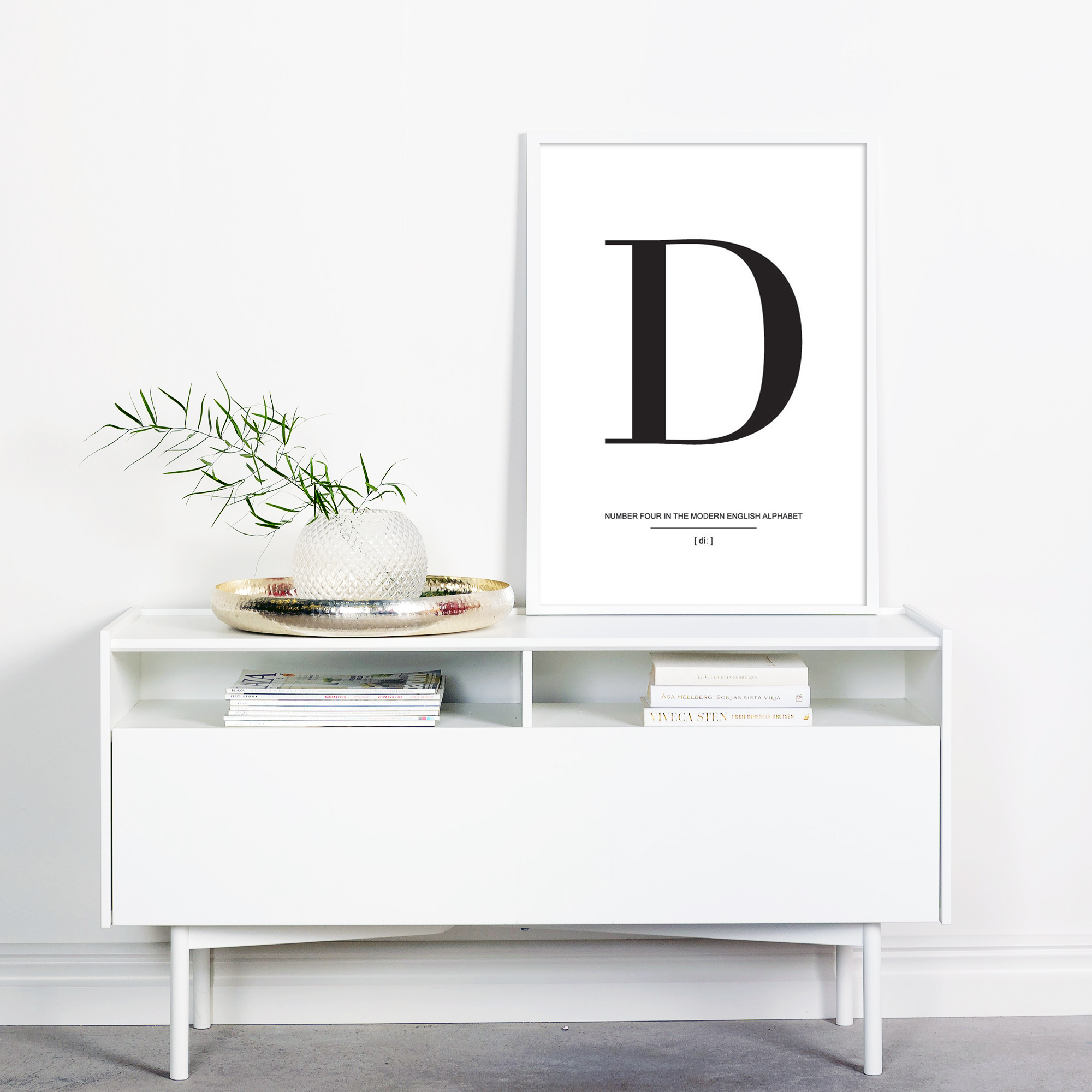V jednoduchosti je krása a to skutečně dokazuje tento elegantní plakát s písmenem D v černé barvě na bílém pozadí. Plakát má hezkou typografii a měl by být doplněn dalšími plakátovými písmeny ze stejné série, aby vytvořil trendovou a krásnou stěnu s obrazy. Vyberte si své oblíbené plakáty s písmeny a vyberte si z naší široké nabídky kvalitních rámů a pak už jen nechte doma na stěnách volně plynout fantazii.