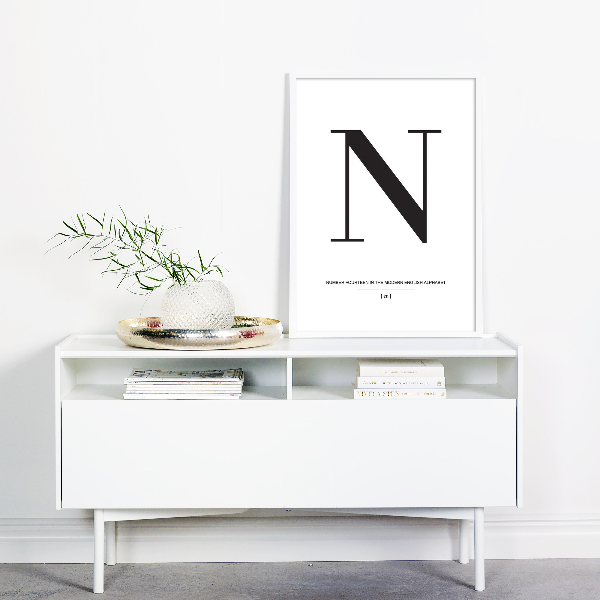 V jednoduchosti se skrývá krása a to opravdu dokazuje tento elegantní plakát s písmenem N v černé barvě na bílém pozadí. Plakát má hezkou typografii a měl by být doplněn o další plakáty s písmeny ze stejné série, aby vytvořil moderní a krásnou obrazovou stěnu. Vyberte si své oblíbené plakáty s písmeny a vyberte si ze široké nabídky kvalitních rámů, pak už stačí nechat doma na stěnách proudit fantazii.