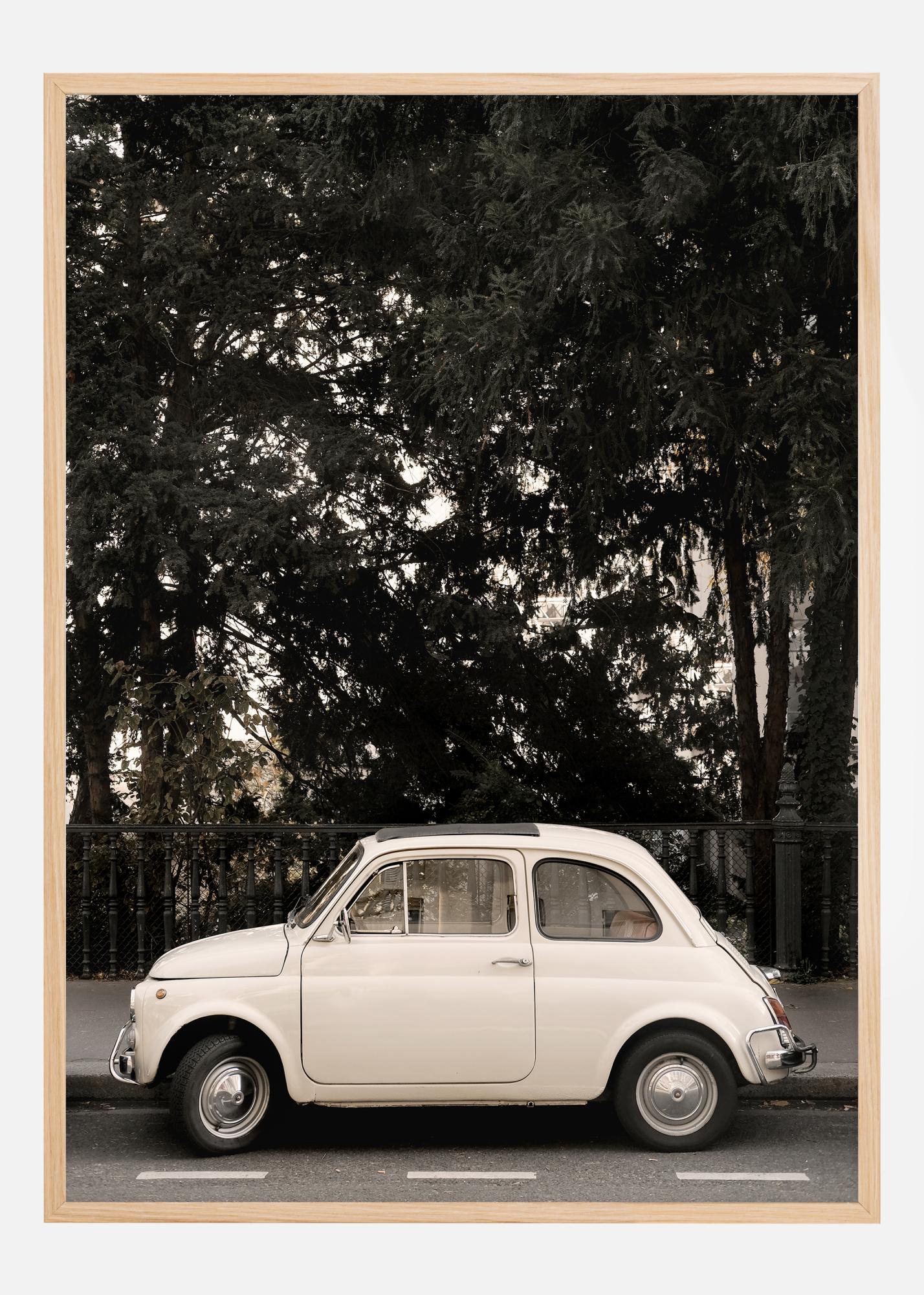 Na tomto plakátu se odráží dokonalá rovnováha mezi čistým bílým povrchem vozu a tmavšími zelenými tóny stromů v pozadí, které společně vytvářejí klidný a harmonický obraz. Sépiová obloha a jemné městské prostředí přidávají další rozměr tepla a hloubky. Tento plakát dodá dotek sofistikovanosti do jakéhokoli pokoje a je ideálním dárkem pro milovníky aut nebo pro ty, kteří si cení klasické estetiky ve svém interiéru.
