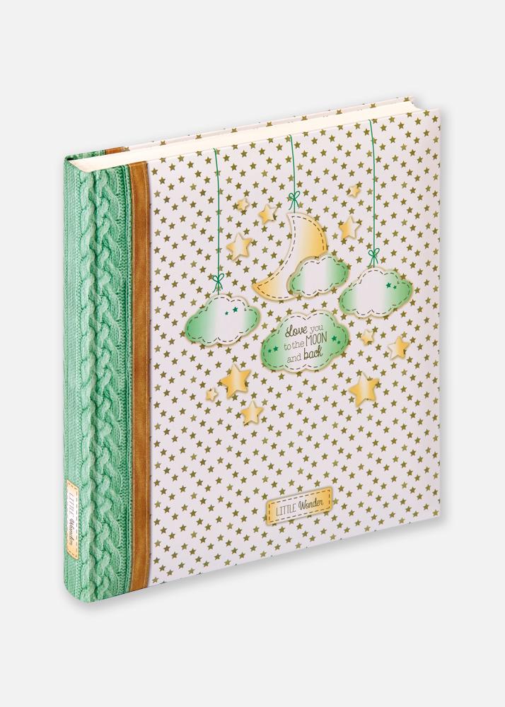Toto fotoalbum má bílou přední část se zeleným copánkovým okrajem a nebeským potiskem s hvězdami různých velikostí, mraky a měsícem. Celé to uzavírá text „Love you to the moon and back“. První dvoustrana alba je zdobena ve stejném stylu a má místo pro text.