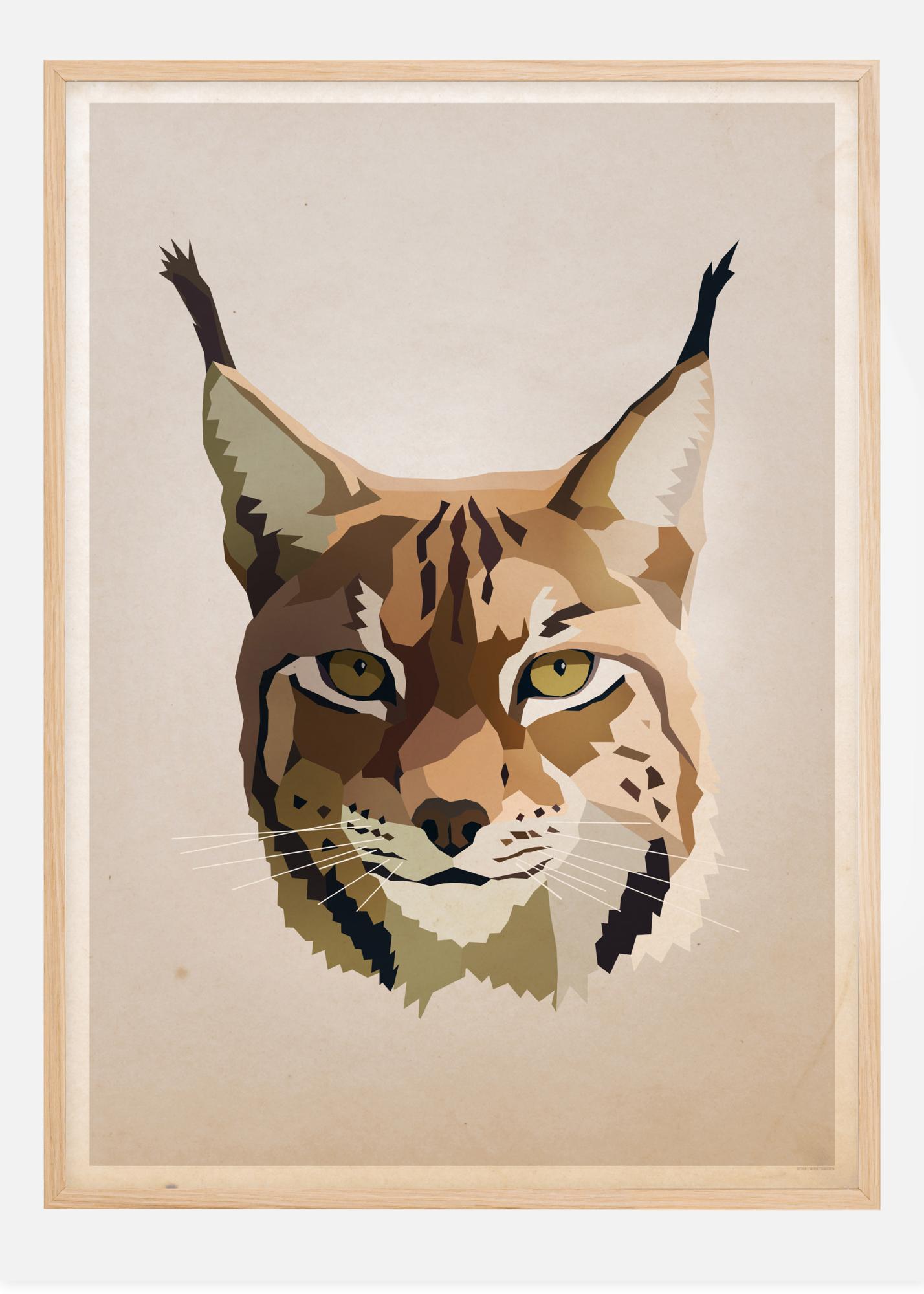 Intenzivní pastelově barevný plakát s krásným rysím. Na světle růžovém pozadí představují oči zvířete pozorný, ale přesto dominantní pohled. Různé hnědé a zelené pastelové barvy se krásně prolínají v očích rysa.