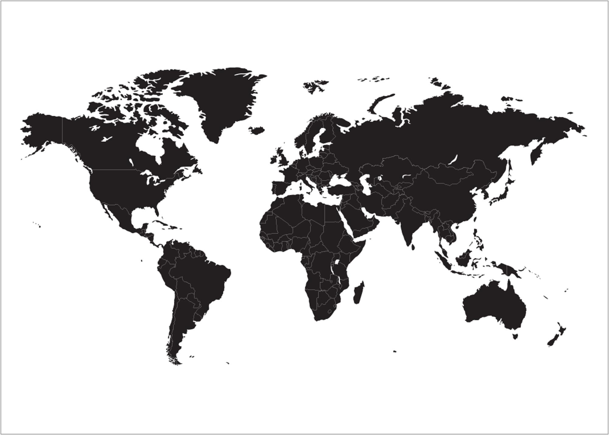 Elegantní černobílá mapa světa s kontinenty v černé, kde jsou země označeny tenkými bílými liniemi. Grafický plakát vypadá stejně dobře v moderním minimalistickém prostředí jako v interiérech s klasickým nábytkem. Vyberte si krásný rám, který ladí se zbytkem interiéru, aby obraz dobře zapadl do celku, nebo mapu zarámujte rámem, který skutečně zvýrazní motiv a přiměje jej vyčnívat na stěně.