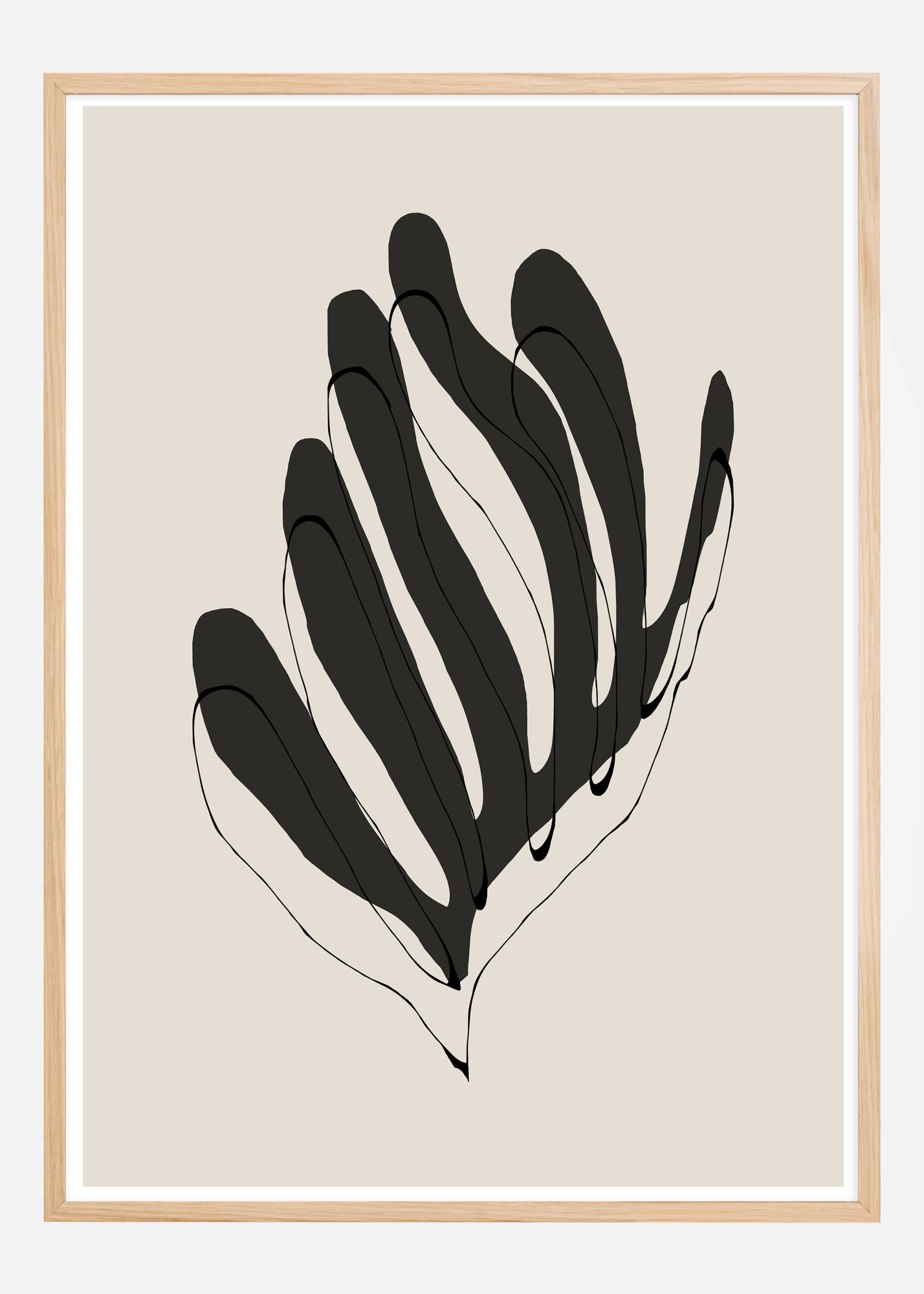 Tento plakát vyzařuje pocit moderního umění s abstraktním ztvárněním květin a přírody. Vlnivé černé formy, které se zvedají vzhůru, připomínají okvětní lístky v neobvyklé, ale poutavé kompozici. Tento minimalistický design využívá barevnou paletu omezenou na černou na teplém off-white pozadí, což vytváří silný kontrast a dává ilustraci elegantně vyniknout.