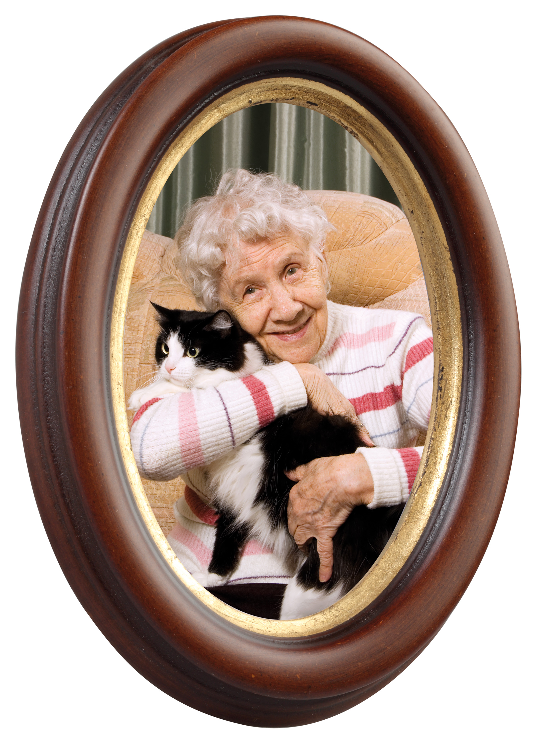Klasický oválný fotorám ze dřeva s elegantním hnědým profilem a elegantním zlatým okrajem hned u motivu. Perfektní, když hledáte portrétní rám vysoké kvality, který je navíc vyroben v Itálii.