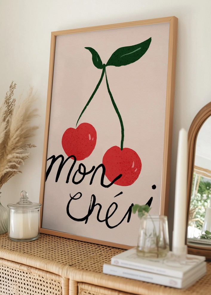Mon Cheri Cherry Typography Plakát
