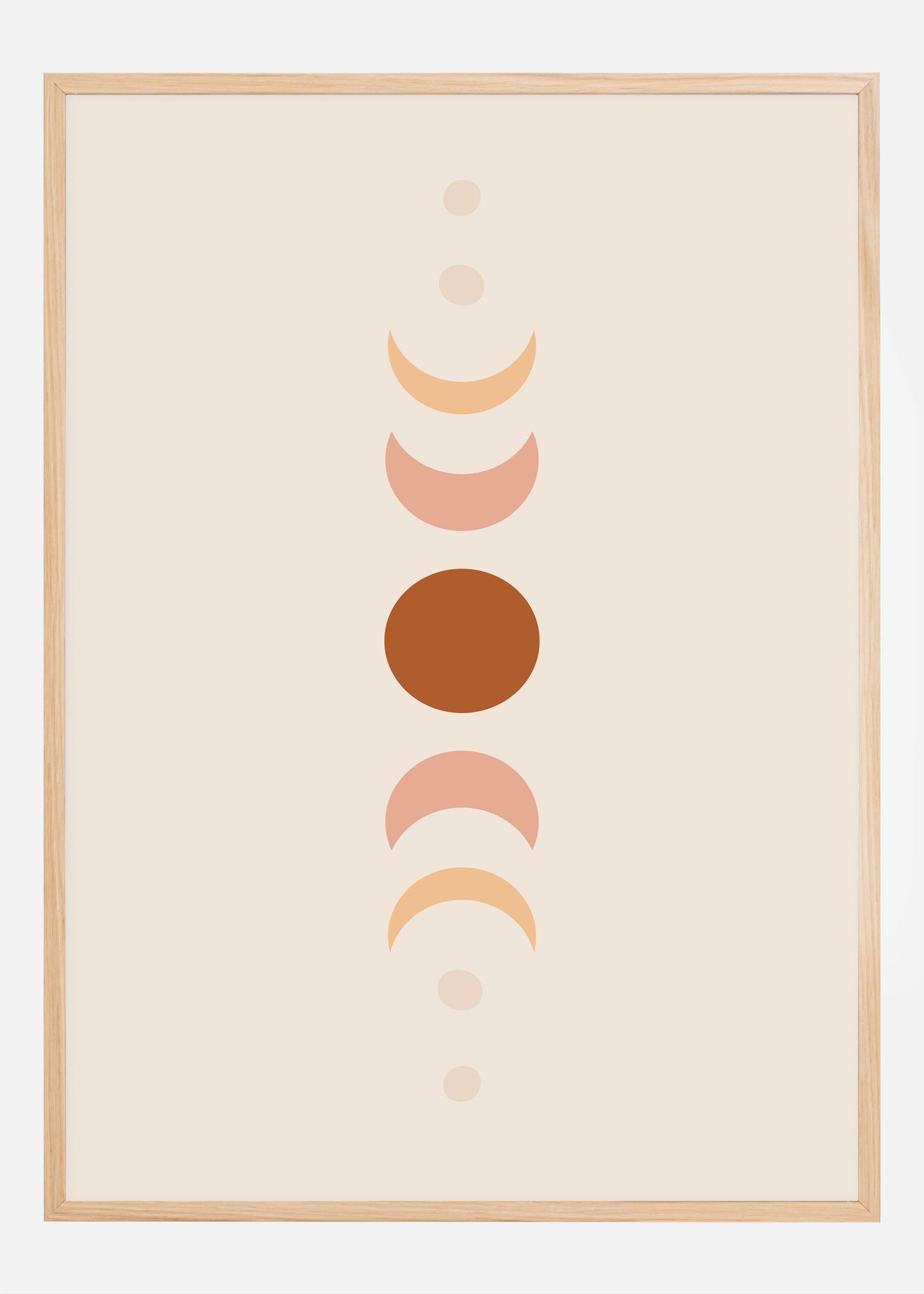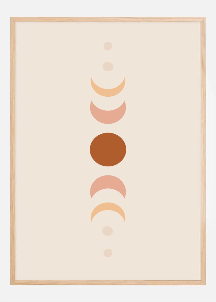 Tento esteticky přitažlivý plakát, který zobrazuje fáze měsíce ve vertikální sekvenci, nabízí uklidňující a čistý design, který dodává každé místnosti pocit klidu a harmonie. Od nového měsíce po úplněk je každá fáze znázorněna v jemných pastelových tónech na neutrálním pozadí, což vytváří jemný, ale přesto silný vizuální zážitek.