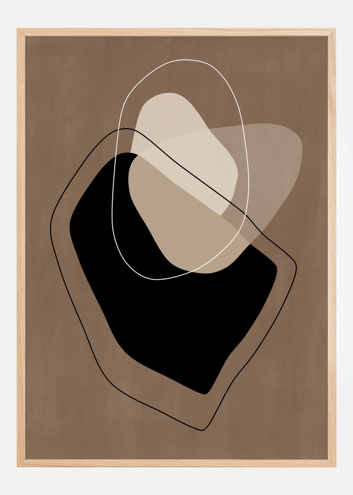 Tento plakát spojuje estetickou jasnost geometrické abstrakce s teplou a příjemnou barevnou paletou. Představuje kreativní spolupráci mezi tmavými a světlými odstíny, kde odvážné černé tvary kontrastují s jemnými bílými liniemi a béžovými a taupe poli. Tato konstelace prvků je obklopena tenkou bílou hranicí, která vytváří iluzi prostoru a hloubky. Tento plakát je ideální pro ty, kteří oceňují moderní design a hledají umělecké dílo, které spojuje kontrastní barvy a tvary způsobem, který je jak podnětný, tak esteticky přitažlivý.