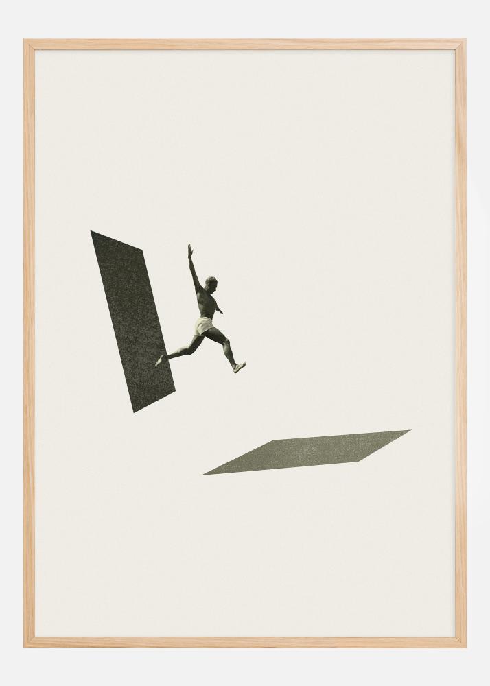 Minimalistický design, s čistými liniemi a omezenou barevnou paletou neutrálních tónů, zdůrazňuje jednoduchost akce a pohyb postavy. Tento plakát inspiruje diváka, aby se nebál riskovat a nestál na místě, což z něj činí dokonalý doplněk v pracovním prostředí, studovnách nebo jiných prostorách, kde jsou cenné vlastnosti jako motivace a hnací síla.