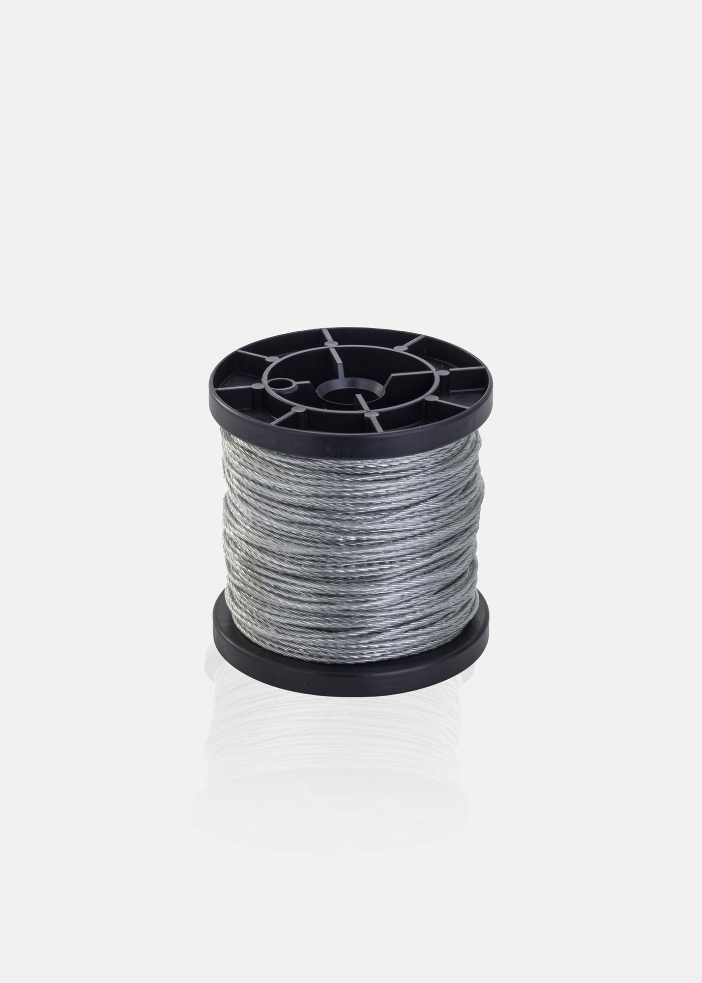 Plastový ocelový drát na praktické 50metrové cívce. Perfektní, když chcete mít pořádek ve všech svých obrazech. Tloušťka je celkem 2,5 mm v průměru, kde samotná ocelová část je 1 mm a PVC povlak je 1,5 mm.