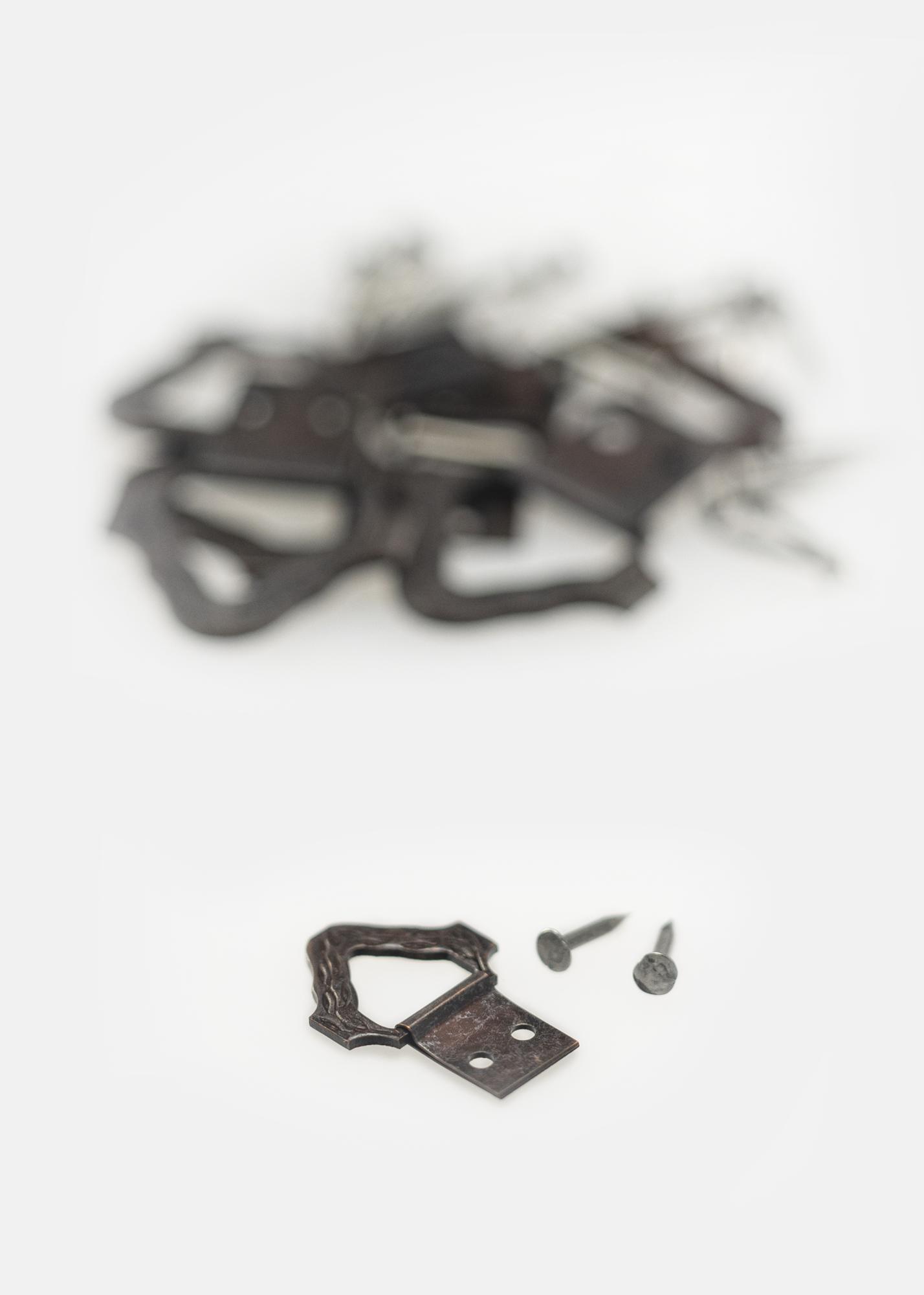 Trochu exkluzivnější trojúhelníkový závěs, který se přibíjí na zadní stranu rámu. Vynikající volba pro starší a trochu jemnější rámy. Závěs je navržen tak, aby byl vidět nad rámem, když rám pověsíte. Můžete si vybrat, zda použijete jeden nebo dva závěsy. Tento je navržen pro lehčí rámy (maximální rozměr rámu: 24x30 cm)