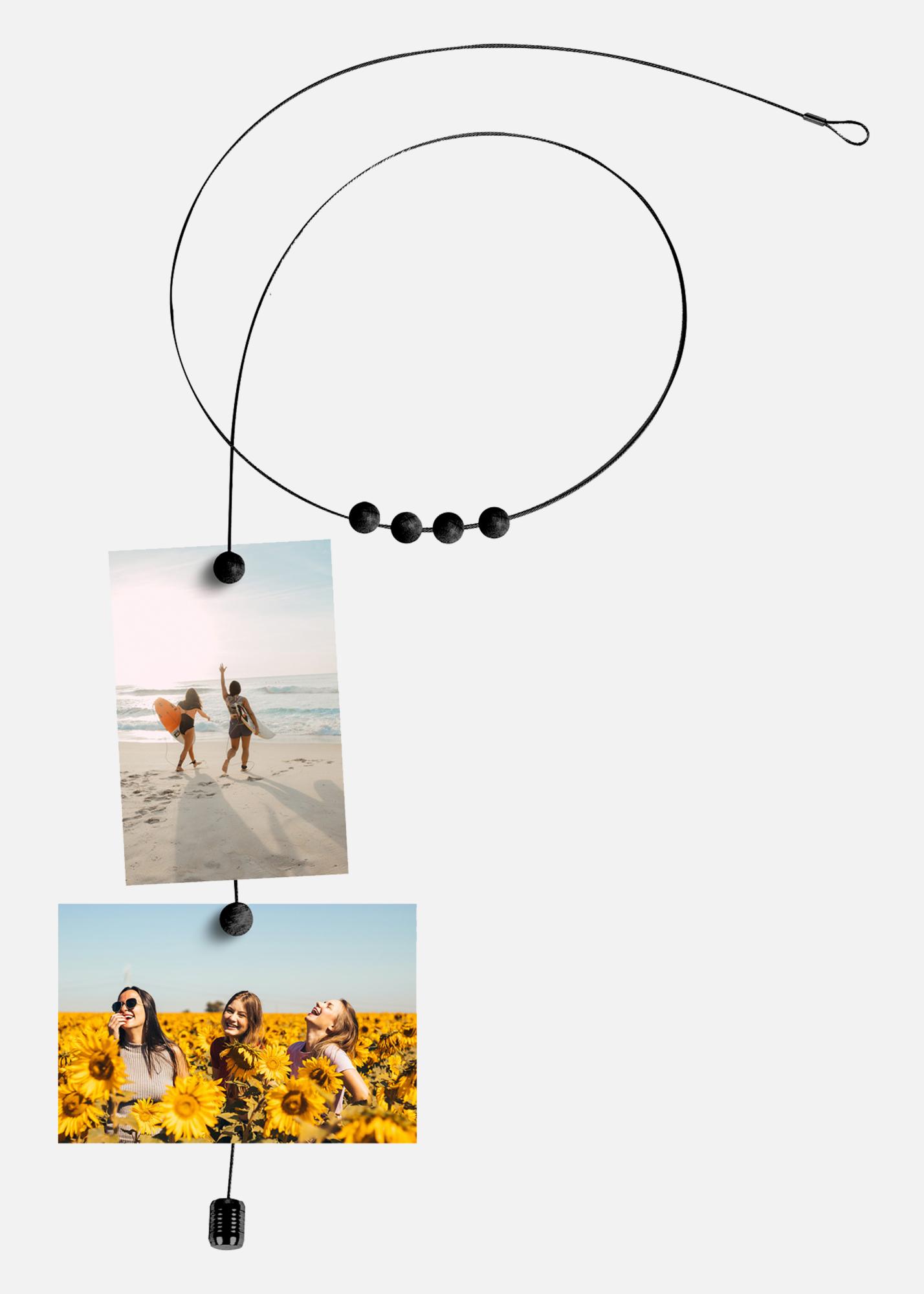 PAC Fotorep Černé je stylový fotorep o délce 150 cm s moderním černým odstínem. Skvělá volba pro ty, kteří chtějí elegantní a nenápadné zavěšení fotografií, karet nebo malých dekorací v domácnosti. Součástí lana jsou silné magnety pro snadné zavěšení.