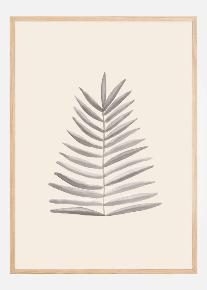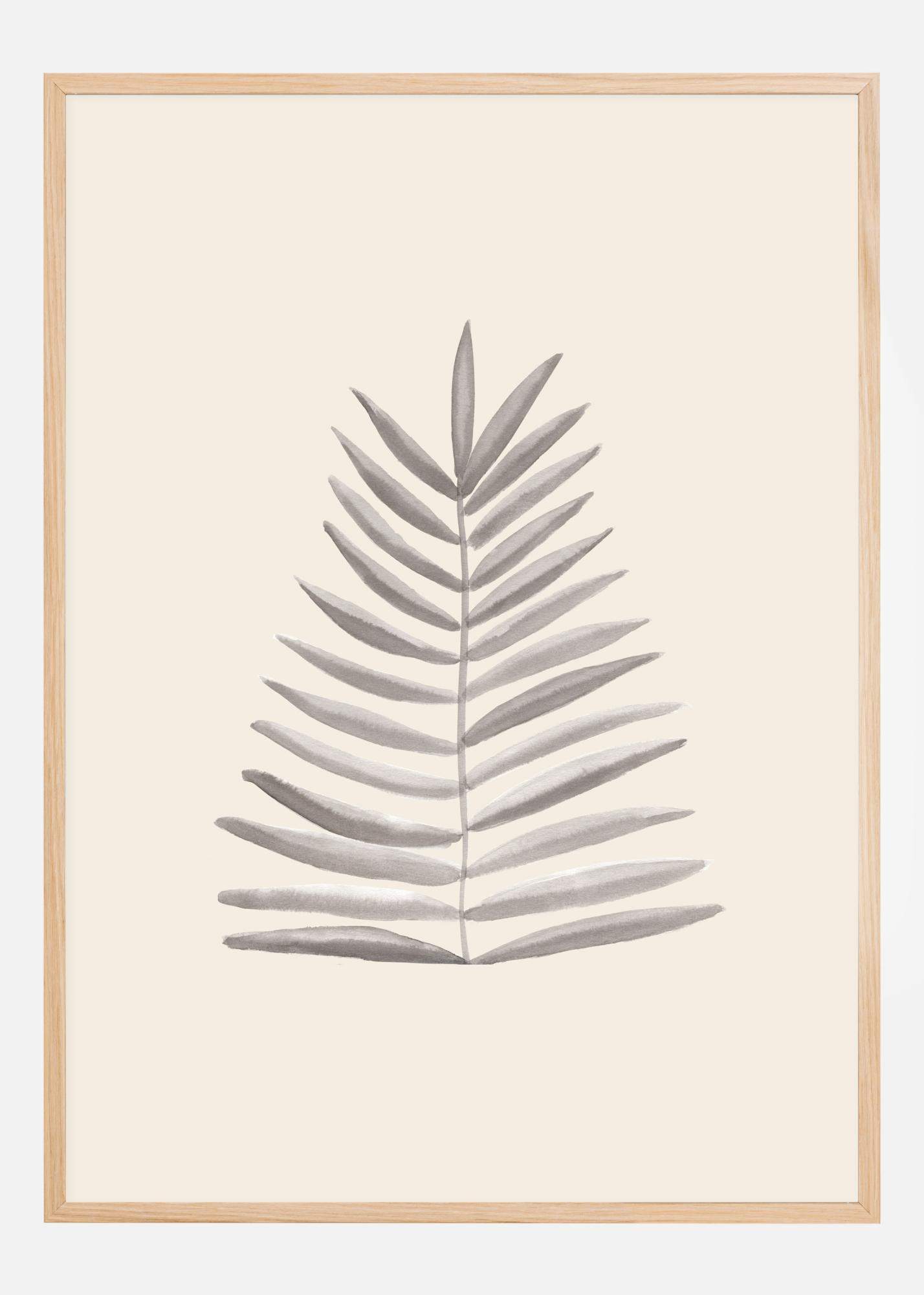 Jednoduchý, ale výrazný plakát s palmovým listem. Na krémově bílém pozadí stojí list vzpřímeně na svém stonku. Krémově bílá pozadí zdůrazňuje malý hnědý palmový list. Přidejte tento dotek elegance na barevnou stěnu.
