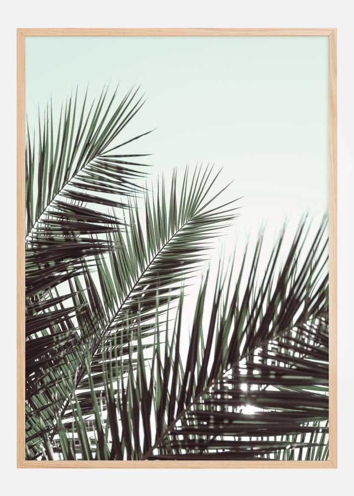 Přeměňte svůj domov na tropickou oázu s tímto sofistikovaným plakátem, který zobrazuje bujné palmové listy na pastelové obloze. Tento plakát zachycuje lehký vánek a klid, který lze najít pouze v teplém klimatu. Detaily zelených listů jsou krásně vykresleny na jemném nebesky modrém pozadí, což vytváří pocit věčného léta a přírody ve vašem prostoru.