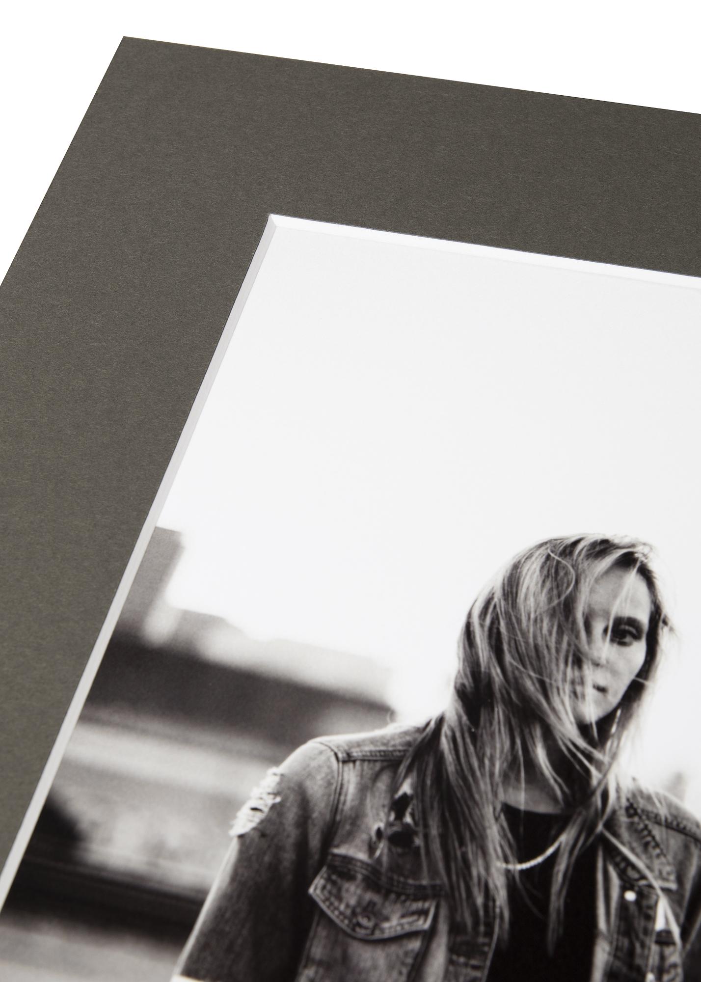 Pasparta Before Dark má sofistikovaný tmavě šedý odstín, který dodává vašemu motivu stylový rám. Pasparta má také bílý jádro, což znamená, že podél vaší fotografie běží bílé okraje, vytváří další elegantní efekt rámování.