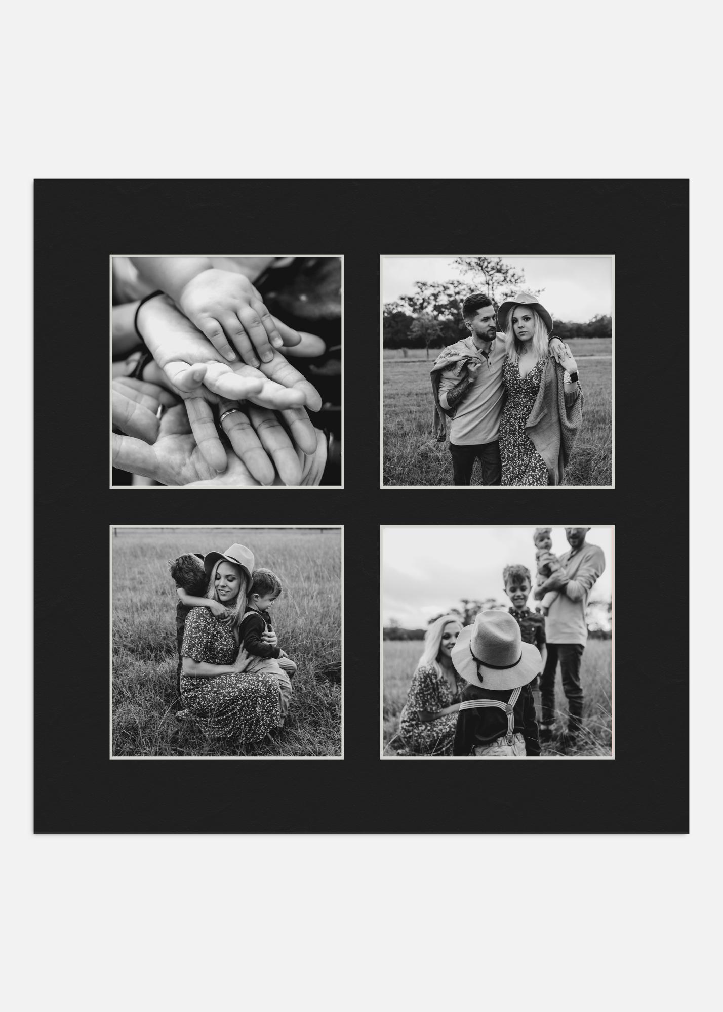 Bez kyselin černá koláž pasparta s šikmo řezanými bílými okraji nejvyšší kvality. V paspartě je místo pro 4 fotografie. Perfektní, když chcete vytvořit vlastní osobní fotografickou koláž.