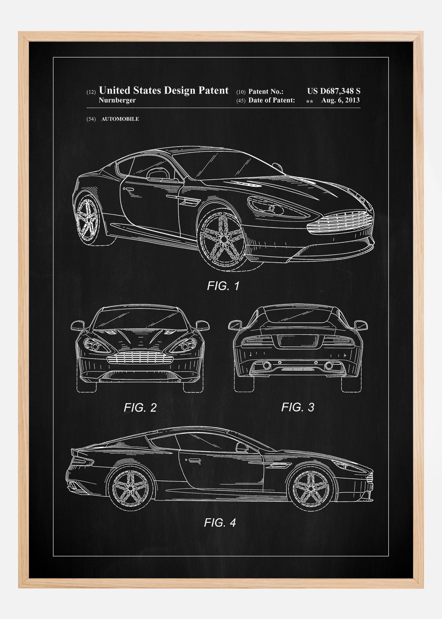 Tento černobílý patentový plakát představuje exkluzivní design Aston Martin, registrovaný pod americkým patentovým číslem US D687,348 S ze dne 6. srpna 2013. Patentový plakát zdůrazňuje estetický a funkční průlom v automobilovém průmyslu a je poctou pokroku v designu automobilů. Je to kreativní detail pro všechny, kdo ocení technický design, a nezbytnost pro sběratele a nadšence do techniky.
