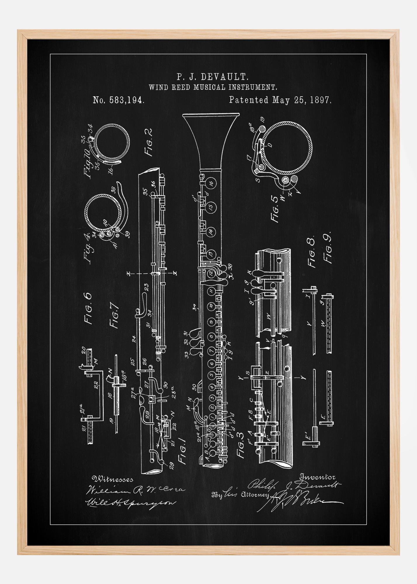 Představujeme tento majestátní patentový plakát, poctu hudební inovaci a designu. Tento plakát zobrazuje klarinet P.J. DeVaulta, patent vydaný 25. května 1897 pod číslem 583,194. Tato přesná reprodukce původního patentového nákresu zobrazuje složitou mechaniku a krásu nástroje, což představuje dokonalý akcent pro jakýkoli prostor, kde je ceněna hudba a historie.