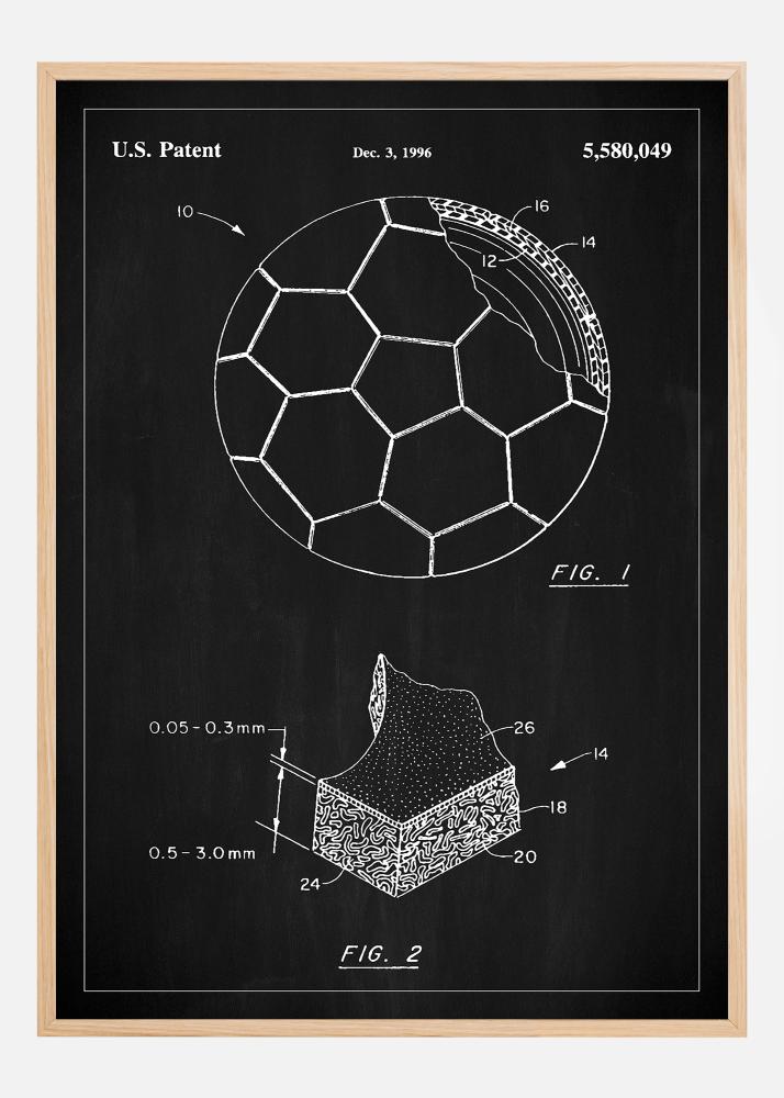 Tento elegantní patentový plakát je poctou inovativnímu designu a technice, perfektní dekorací pro všechny, kteří oceňují evoluci fotbalu a sportovního vybavení. Ilustrace je detailní zobrazení amerického patentu s číslem 5,580,049, vydaného 3. prosince 1996, což vyplývá z jeho výrazného číslování v pravém horním rohu. Motiv zachycuje dvě postavy: část fotbalu a bližší pohled na jeho vnitřní strukturu, které oba znázorňují unikátní aspekty patentu a technické detaily jako jádro inovace.