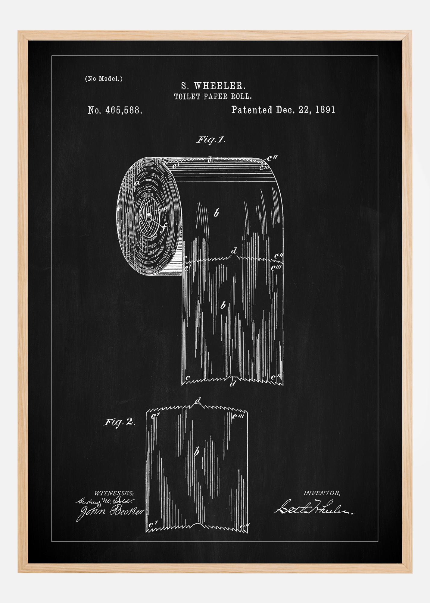 Tento výrazný patentový plakát představuje nadčasový vynález, klasickou roli toaletního papíru, prostřednictvím jeho původního patentového výkresu z 22. prosince 1891. Kontrast mezi černým pozadím a bílými čarami dává tomuto patentovému plakátu elegantní a moderní vzhled, zatímco vzdává hold geniálním myšlenkám stojícím za předměty každodenního života. Je to jedinečná směs umění a historie, která přitahuje pozornost a vyvolává intelektuální diskuse.