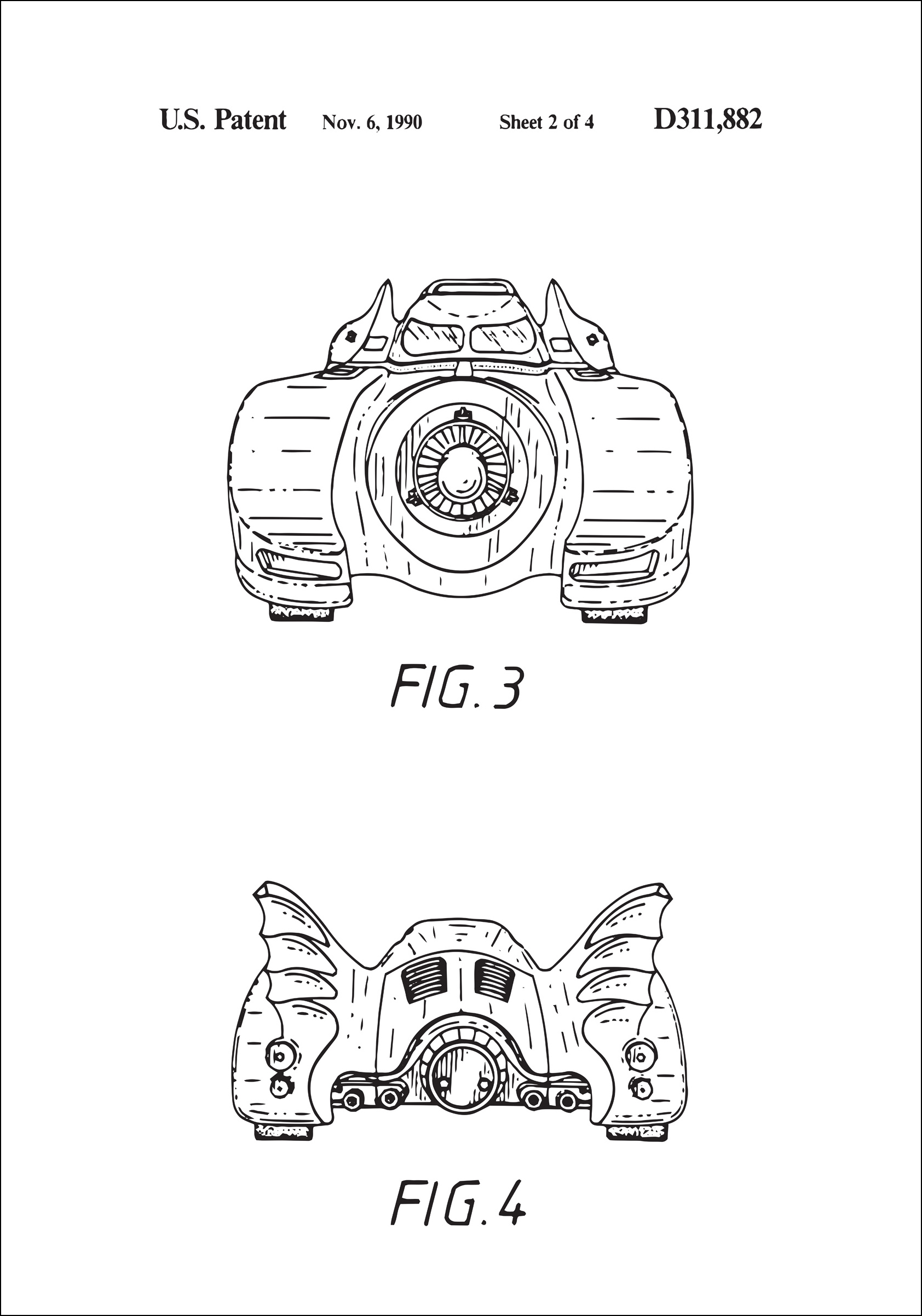 Naše kolekce patentních plakátů je doplněna tímto fascinujícím obrázkem, který zobrazuje dvě perspektivy průkopnického designu Batmobilu. Detaily v patentovém výkresu, referenční číslo D311,882 ze dne 6. listopadu 1990, ukazují jedinečnou estetiku a technickou vytříbenost vynálezu. Tyto obrázky nejsou jen historickým dokumentem, ale také poctou k tvůrčímu pokroku, který charakterizuje náš technický rozvoj. Ideální pro přidání prvku intelektuální stimulace a umělecké integrity do každého prostředí.