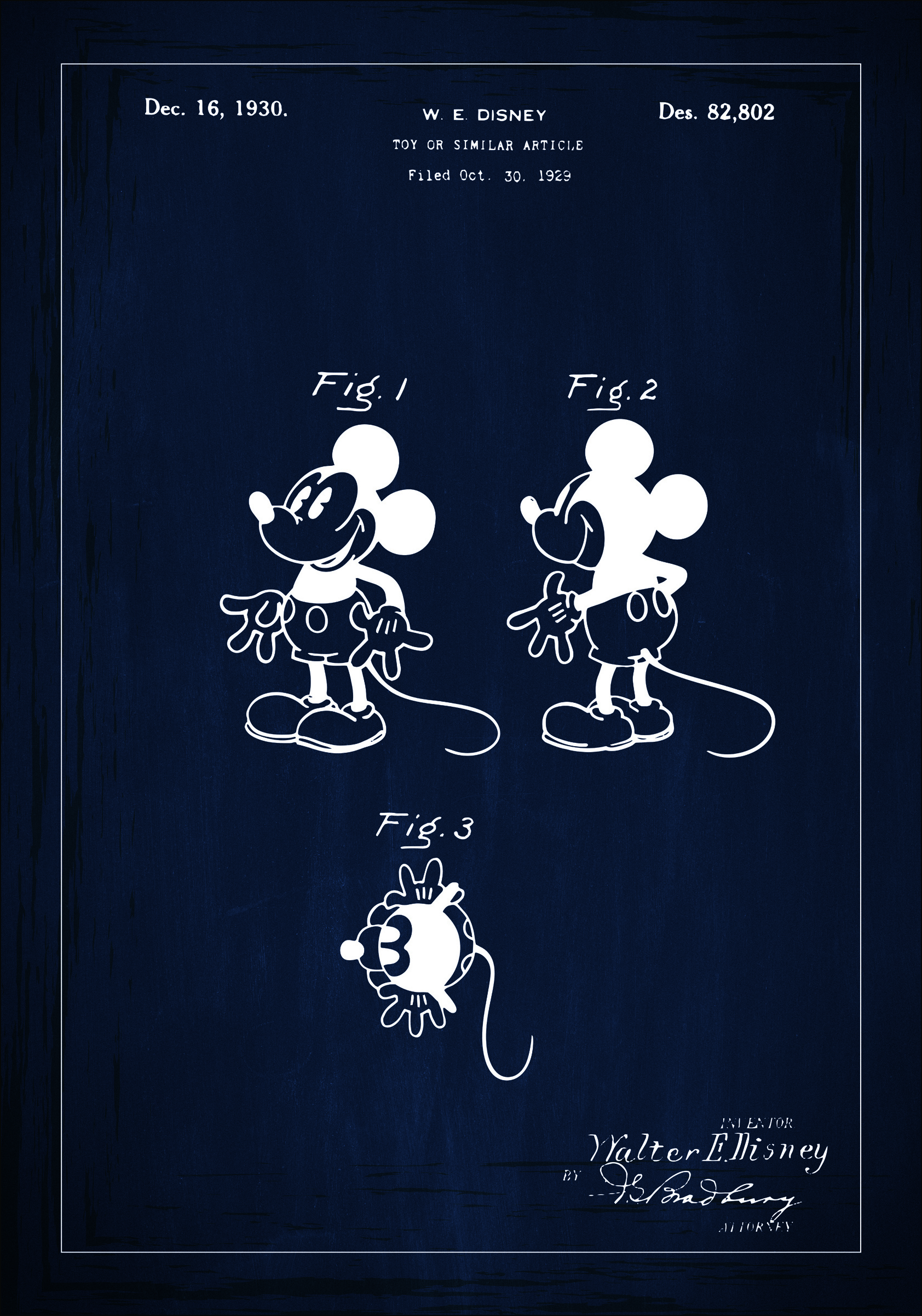 Každý detail na tomto patentovém výkresu je proveden s precizností, od zaoblených uší až po charakteristickou siluetu, kterou je okamžitě možné rozpoznat. Tento patentový plakát je poctou jedné z nejoblíbenějších postav v historii zábavy a představuje část kreativního procesu, který definuje moderní design hraček a populární kulturu. Je to dokonalý začátek konverzace a estetický doplněk k jakékoliv sbírce nebo domácí výzdobě.