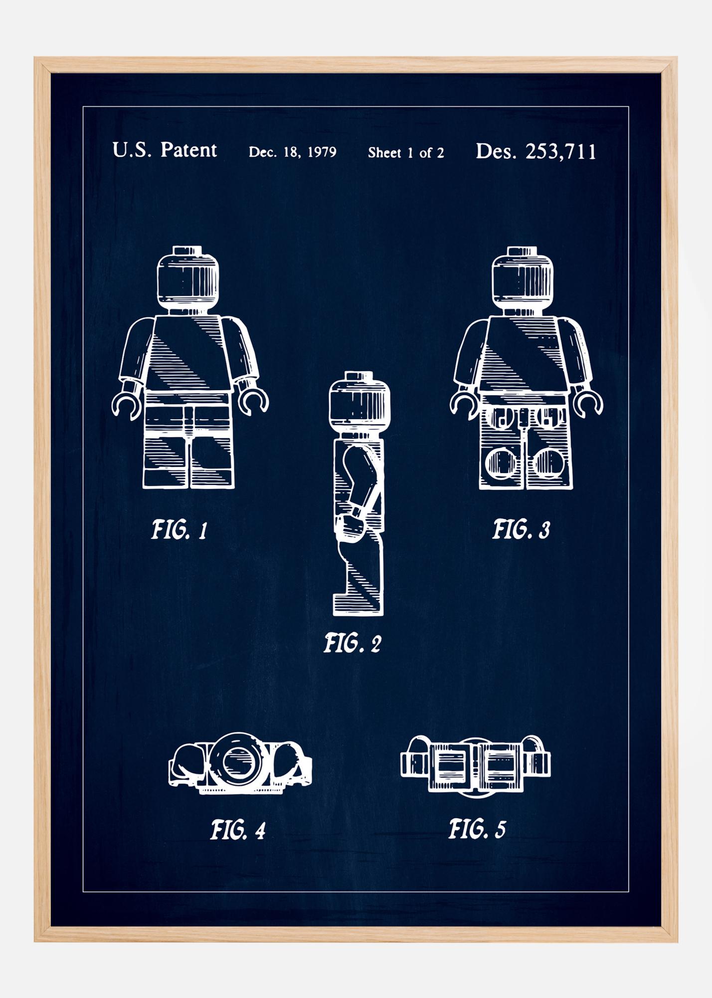 Tento jedinečný patentový plakát zobrazuje klasickou hračkovou figurku od Lego, která si získala zvláštní místo v srdcích dětí i dospělých. Detailní motiv je autentickou kopií původního patentového nákresu, archivovaného 18. prosince 1979, s patentovým číslem Des. 253,711. Umělecky prezentovaný na tmavém pozadí, mění se technická ilustrace na stylové umělecké dílo, které vzdává hold inovaci a designu. Perfektní pro nadšence do interiérového designu nebo sběratele, tento patentový plakát je poctou nadčasové kreativitě a hravosti.