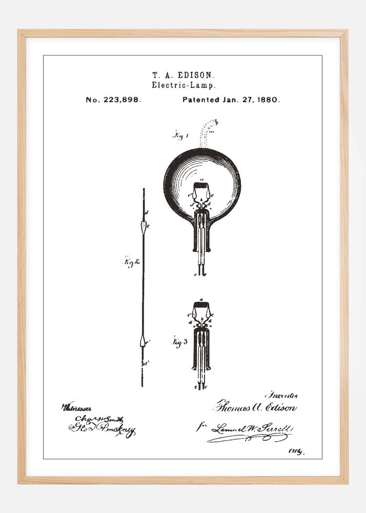 Tento nadčasový patentový plakát zobrazuje průkopnickou elektrickou lampu Thomase A. Edisona, která osvětlovala naše životy od doby, kdy získala patent č. 223 898 dne 27. ledna 1880. Tento elegantní a vzdělávací plakát je poctou jednomu z největších vynálezů všech dob a poskytuje jedinečný pohled na technologické inovace. Detaily kresby odhalují pečlivý proces vynálezu žárovky, produktu, který je ústřední v našich každodenních životech. Tento plakát je skvělým začátkem konverzace a zdrojem inspirace, ideální pro každého, kdo oceňuje historickou technologii a design.