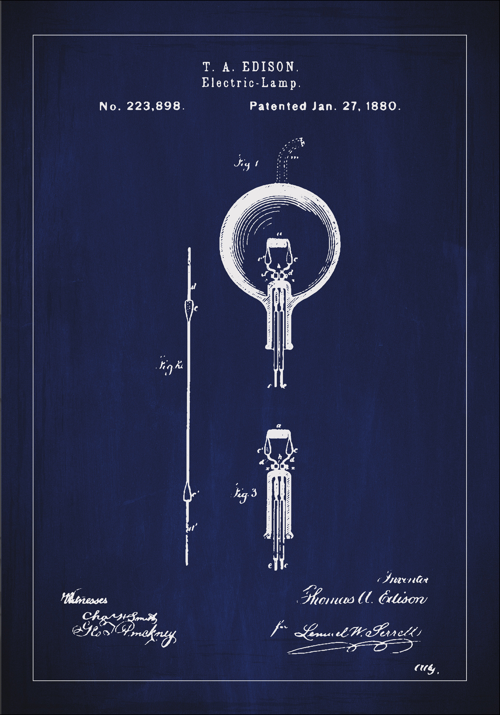 Oživte monumentální okamžik v historii s naším patentovým plakátem elektrické lampy Thomase A. Edisona, ikonického vynálezu, který osvětlil svět od udělení patentu dne 27. ledna 1880 s číslem 223,898. Tento patentový výkres poskytuje detailní pohled na Edisonův původní design a konstrukci lampy a přináší do kteréhokoli pokoje průmyslový a historický dojem. Výrazné linie a jasnost plakátu z něj činí elegantní doplněk ke sběratelské zdi nebo samostatné umělecké dílo.
