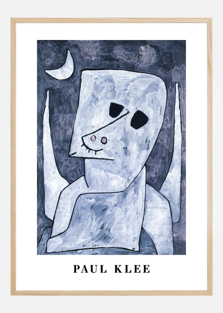 Kleeho známý zájem o nadpřirozeno a metafyziku se zřetelně projevuje na tomto plakátu. V pozadí visí tenký srpek měsíce, což přidává prvek kosmické mystiky a doplňuje pohled a pózu ústřední postavy. Tento tisk není jen poctou Kleeho jedinečnému stylu, ale také poskytuje konverzační téma, které vzbudí zvědavost a prohloubí každý prostor, ve kterém je umístěn. Jeho rozmanitost modrých tónů, od nebesky světlých po téměř černé, činí z tohoto kousku všestranný a podmanivý interiérový doplněk.