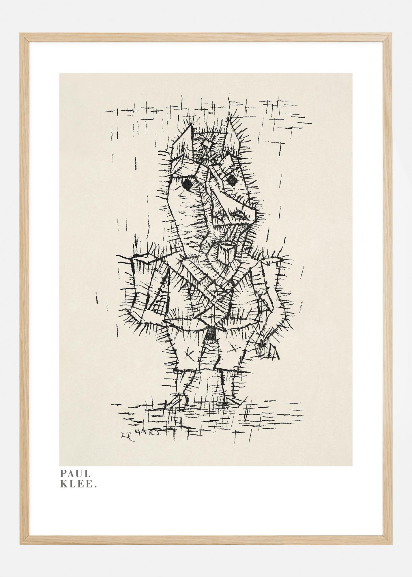 Tento plakát zobrazuje fascinující grafické znázornění díla Paula Kleeho "Ass Esel" z roku 1925. Představuje abstraktní postavu složenou z dynamických linií a tvarů, které vytvářejí silný vizuální efekt. Umělcova hra s texturou a liniemi ožívá v tomto černobílém díle, kde kontrast mezi odvážnou čarou a jemným pozadím vytváří napínavou kompozici. Tento tisk je odrazem Kleeho schopnosti přeměnit jednoduché obrysy na výmluvné a emocionálně nabité obrazy.
