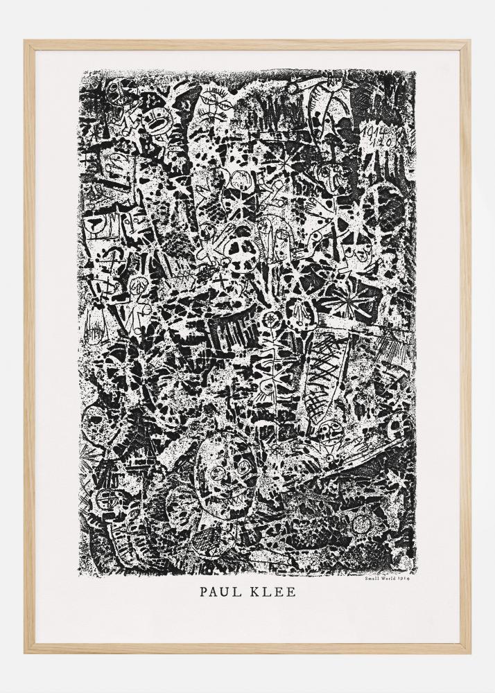 Tento plakát zobrazuje "Malý svět" Paula Kleeho z roku 1914 a je význačným příkladem umělcova raného zkoumání grafických vzorů a symbolů. Tento tisk je charakterizován detailním a složitým provázáním linií, které vytvářejí hluboký a komplexní obrazový svět. Je to perfektní plakát pro ty, kteří chtějí přinést prvek historického významu umění a intelektuální stimulaci do svého domova nebo pracoviště.
