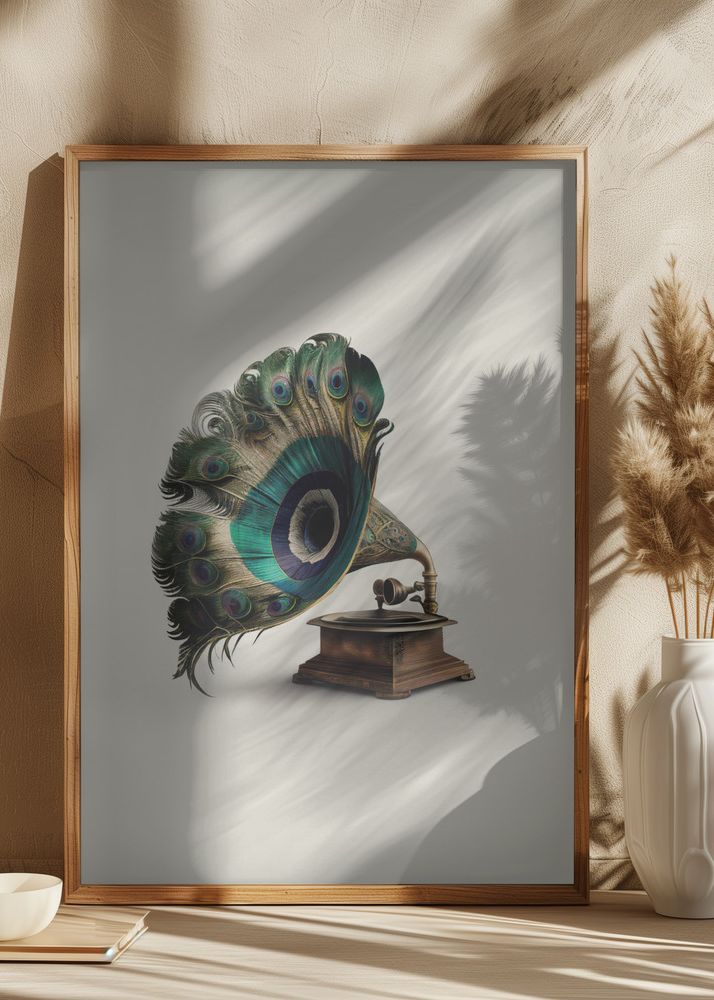 Peacock Gramaphone Poster