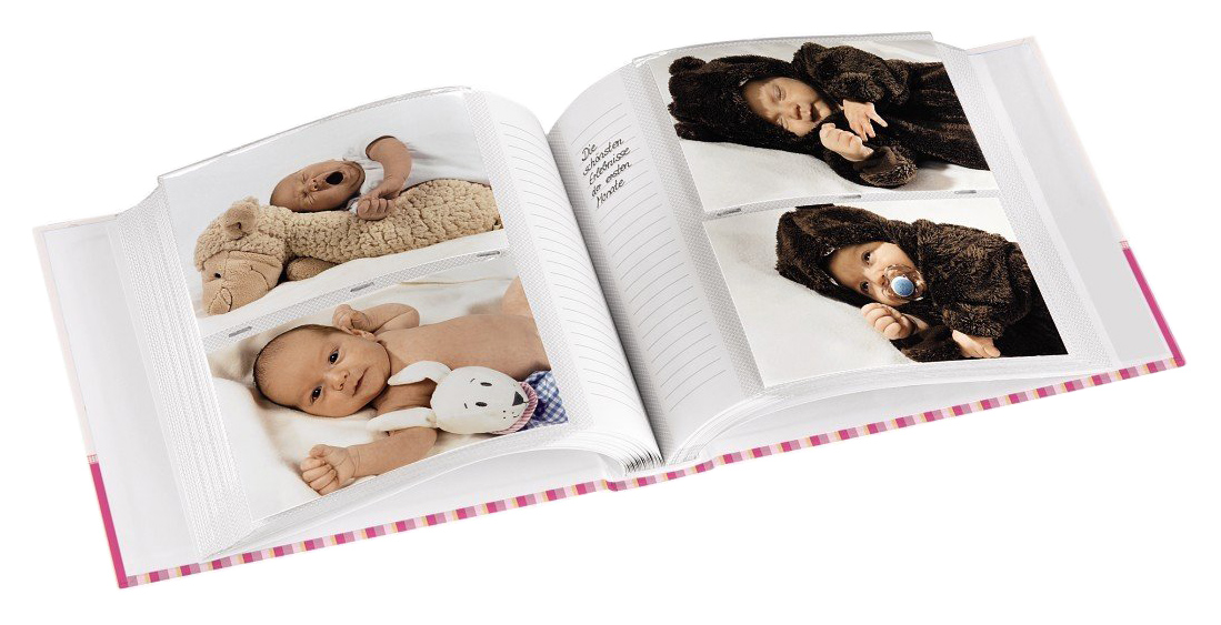 Shromážděte fotografie dítěte v hravě navrženém albu s praktickými fotokapsami! Tento roztomilý design obsahuje motivy malých oděvů, dudlíků, lahviček, kočárků, medvídků a dalších drobností, které jsou v zájmu dítěte. V sérii si můžete vybrat mezi barvami modrá a růžová.