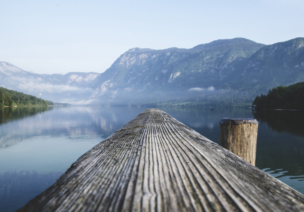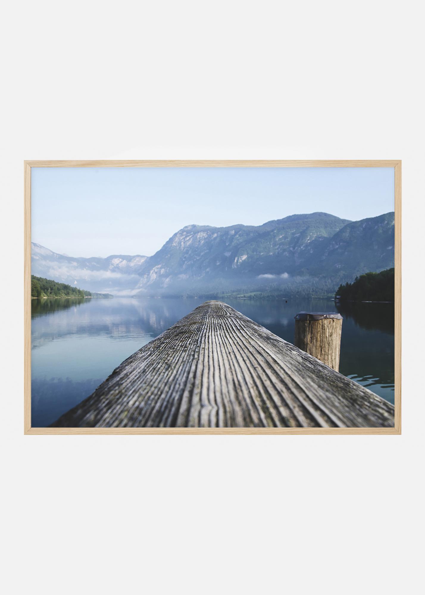 Pohled na velkolepou krajinu fjordů z počasím zbitého mola. Krajinný tisk v modrých tónech, který se hodí stejně dobře jako samostatný obraz na stěně, ale i ve spojení s námořními doplňky nebo jinými obrazy. Doplňte šedým dřevěným rámem pro zesílení barev na obraze, nebo tenčím černým rámem pro minimální výraz.
