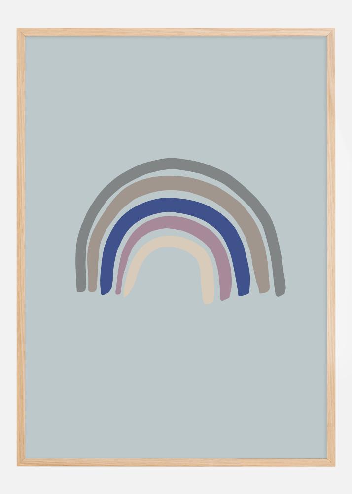 Tento zjednodušený a současný plakát zobrazuje stylizovanou duhu na uklidňujícím modrém pozadí, nabízející moderní interpretaci klasického motivu. Oblouky duhy, v odstínech šedé, modré, růžové a fialové, vytvářejí jemný přechod z jedné barvy do druhé, zatímco poskytují pocit rovnováhy a harmonie. Toto minimalistické umělecké dílo je nenápadnou, ale silnou připomínkou naděje a klidu a bylo by sofistikovaným doplňkem pro jakýkoli současný prostor.