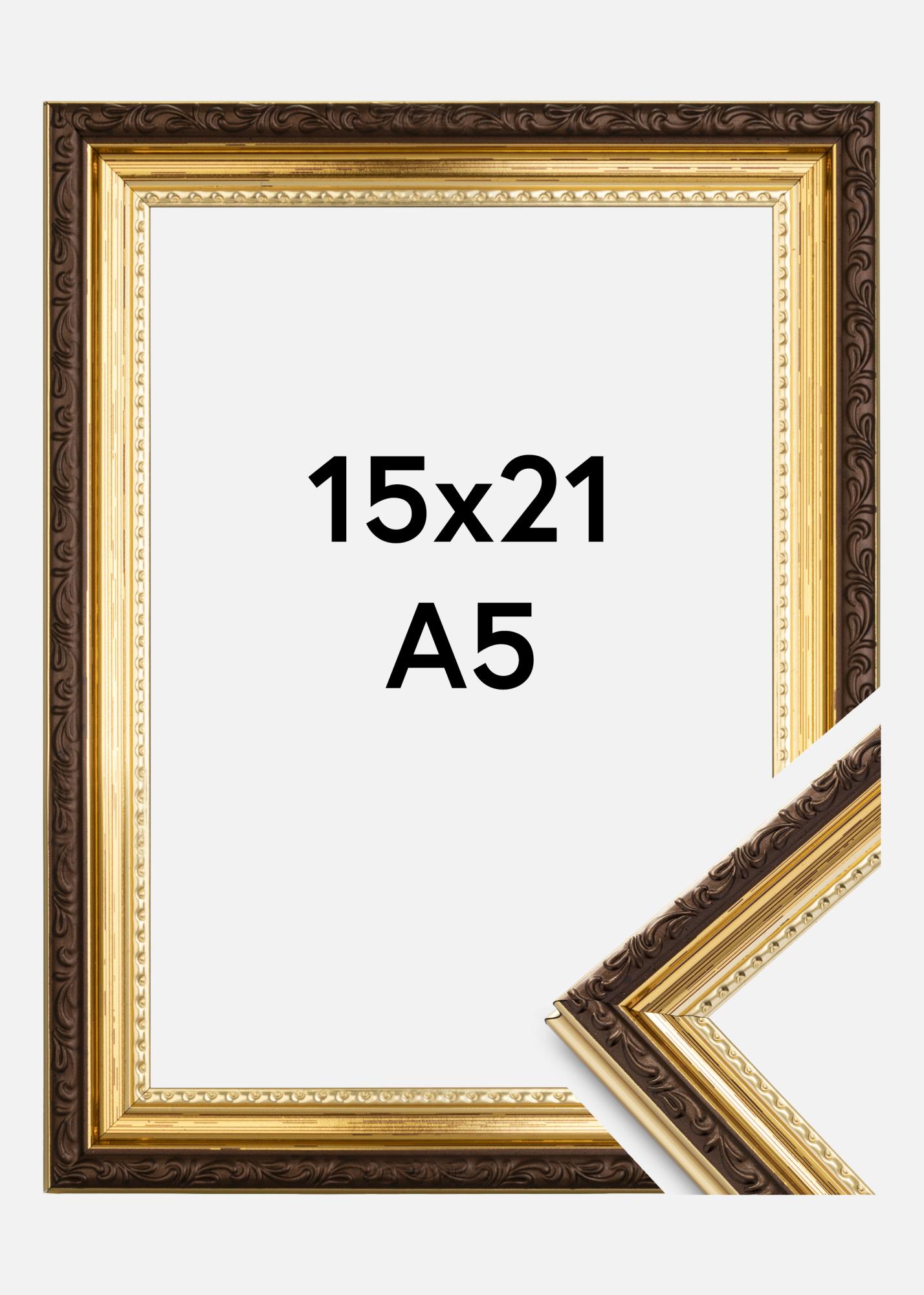 Hledáte krásně zdobený rám ve starším stylu? Abisko Akrylátové Sklo Zlatý je robustní zlatý rám s neuvěřitelně stylovými ozdobami. Lišta rámu, široká 25 mm, má lesklou zlatou barvu s ozdobným hnědým okrajem uprostřed. Také zlatá část je zdobená, s vlnitým vzorem blízko skla.