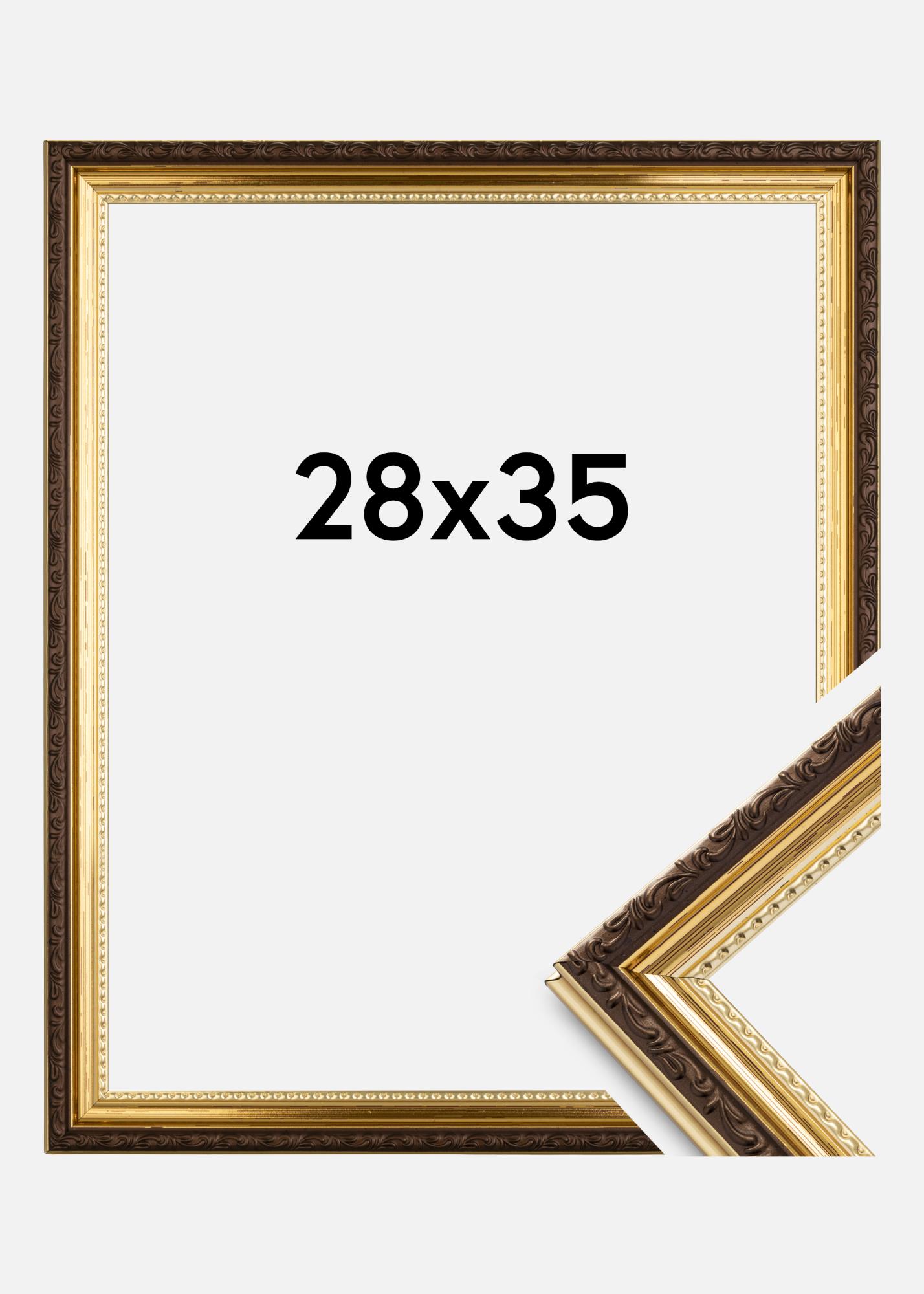 Hledáte krásně zdobený rám ve starším stylu? Abisko akrylové sklo Zlato je pevný zlatý rám s neuvěřitelně stylovými ozdobami. Lišta rámu, široká 25 mm, má lesklou zlatou barvu s ozdobným hnědým okrajem uprostřed. I zlatá část je ozdobená, s vlnitým vzorem nejblíže sklu.