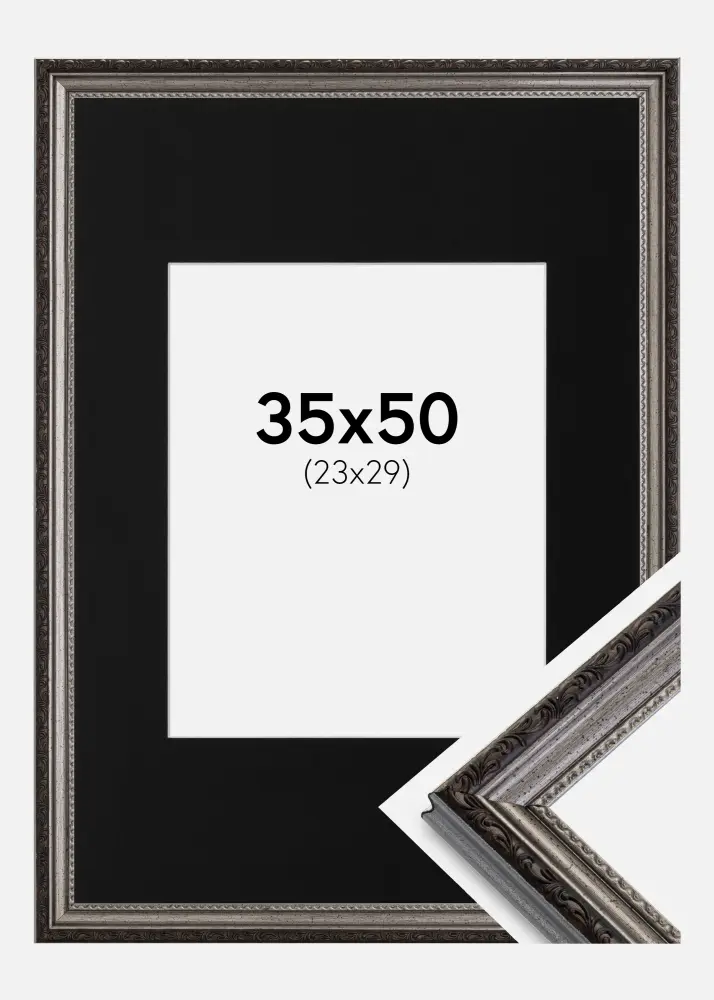 Rám Abisko Stríbrná 35x50 cm - Pasparta Cerná 24x30 cm