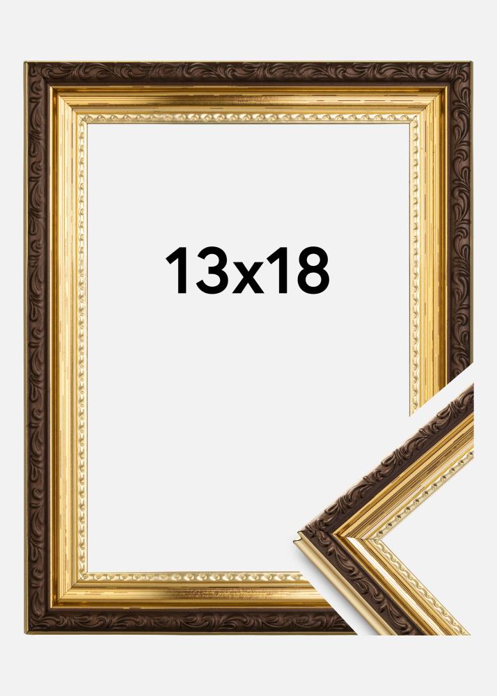 Abisko je elegantní zlatý fotorámeček v retro stylu s jemnými ozdobami. Rámeček je v lesklé zlaté barvě s červenými prvky a má krásně zdobený vnější okraj v teplé hnědé barvě. Je velmi vhodný, když hledáte stylový zlatý rámeček ve starším stylu.