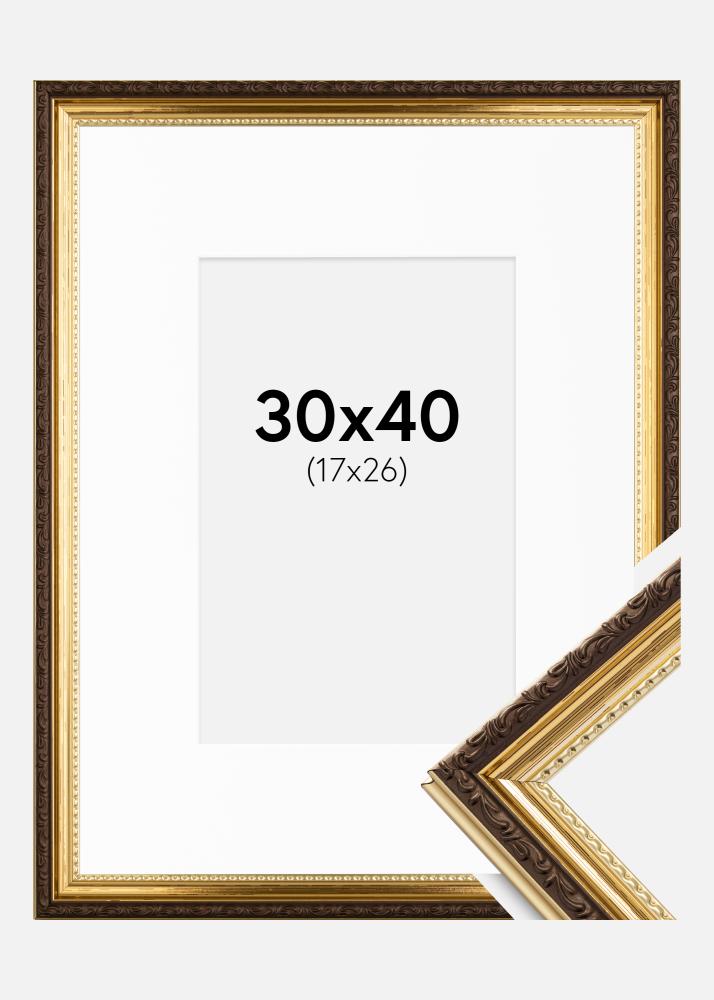 Rám Abisko Zlatá 30x40 cm - Pasparta Bílá 18x27 cm