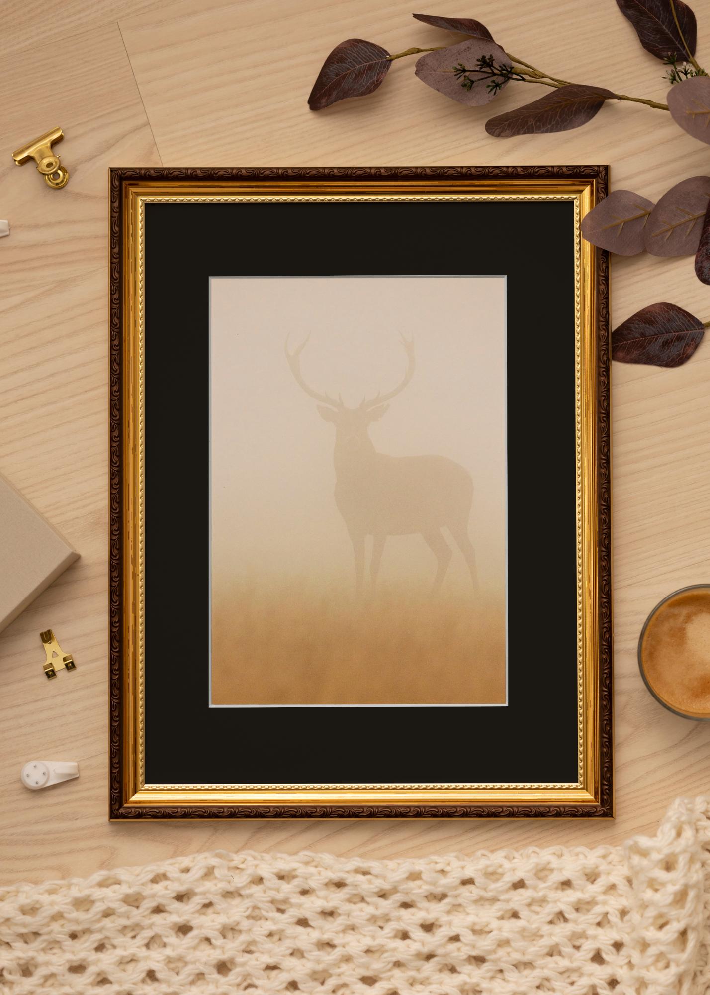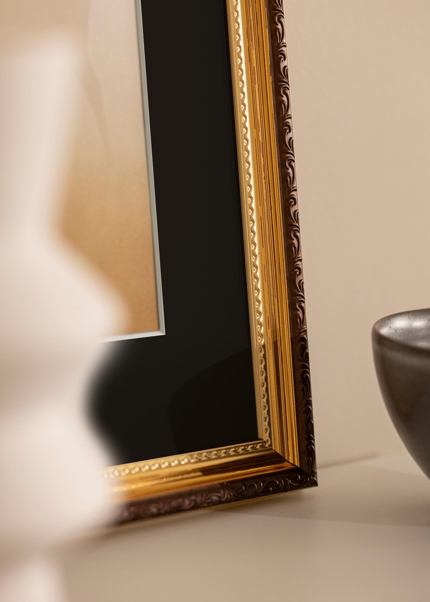 Dopřejte svým oblíbeným obrázkům pozornost, kterou si zaslouží, s elegantním zlatým rámem, kompletním s černou paspartou. Tento sofistikovaný rám je ideální pro zvýraznění vašeho obrázku ve velikosti 18x27 cm a jeho lesklý povrch dodává vašemu nástěnnému dekoraci luxusní nádech. S šířkou rámu 25 mm a hloubkou 20 mm vytváří působivou přítomnost, aniž by narušoval ostatní prvky zařízení místnosti.