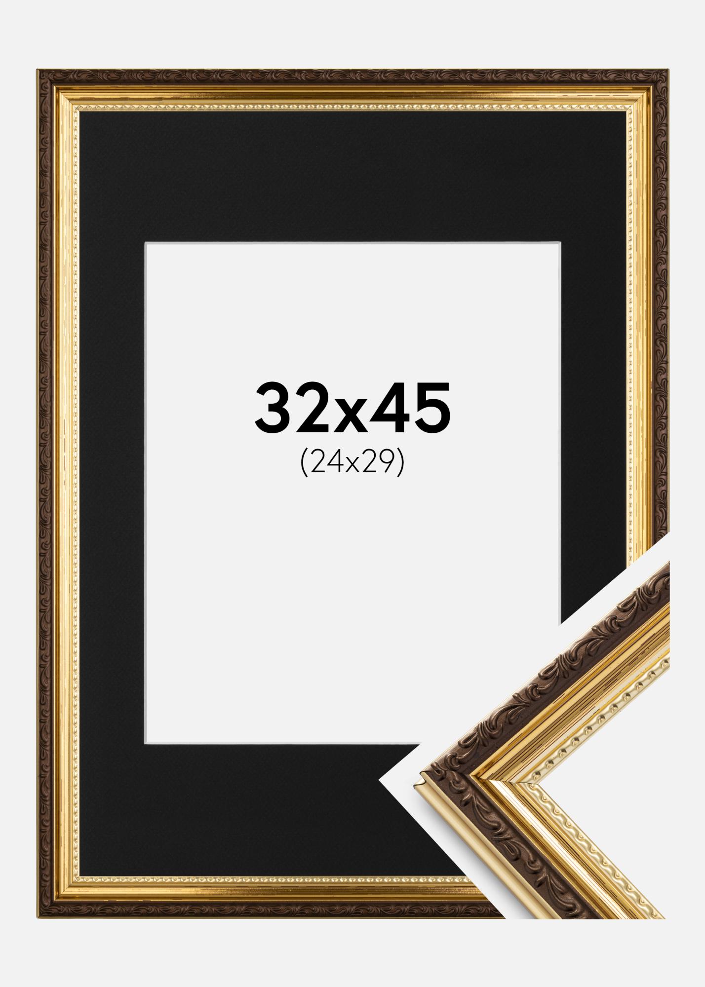 Rám Abisko Zlatá 32x45 cm - Pasparta Cerná 25x30 cm