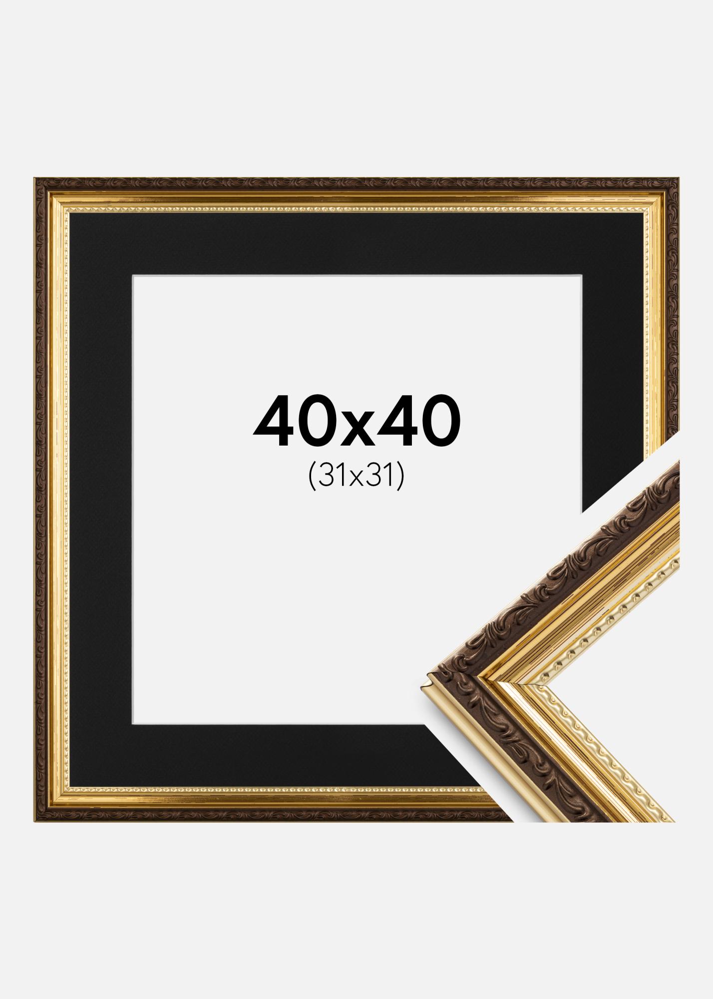 Rám Abisko Zlatá 40x40 cm - Pasparta Cerná 32x32 cm