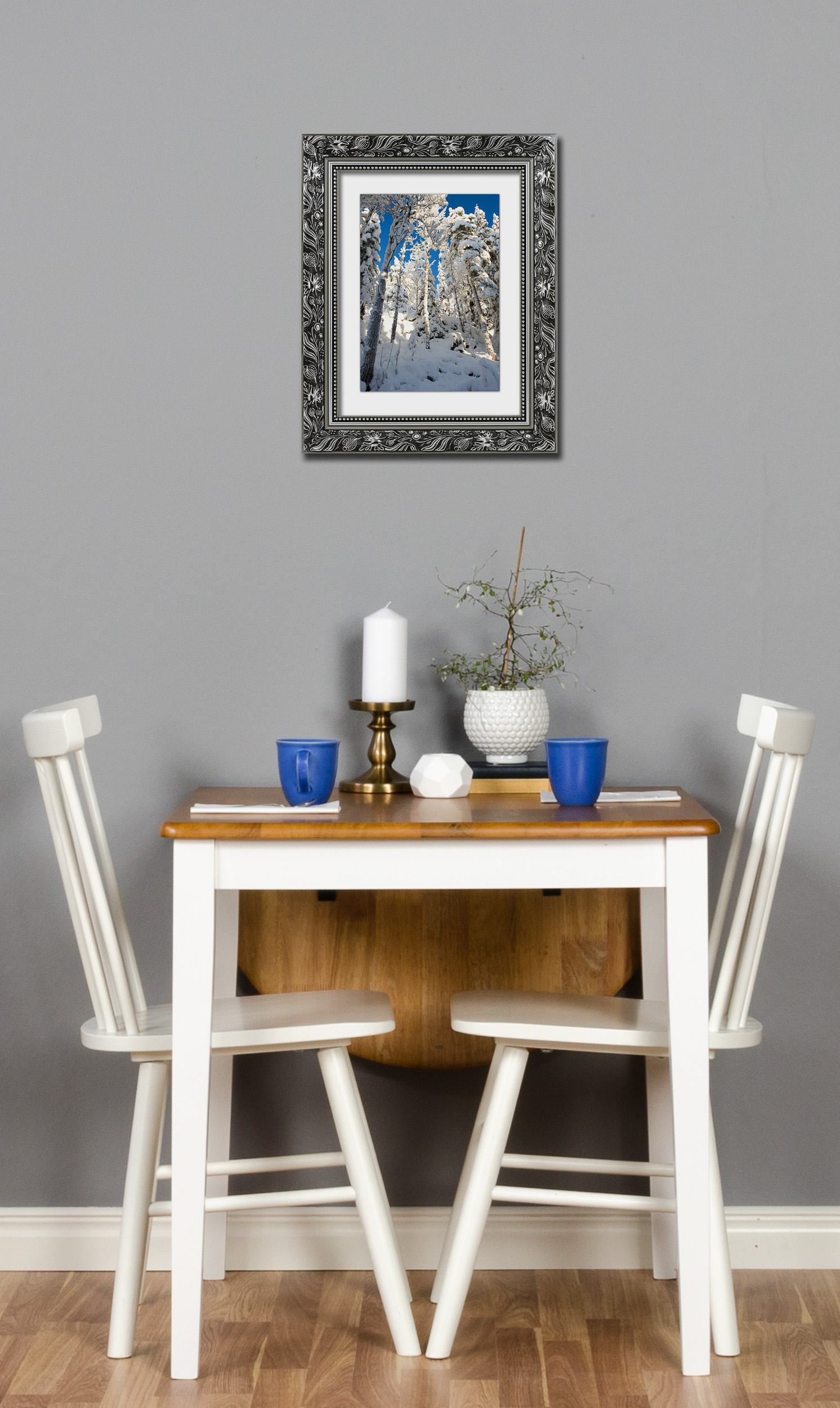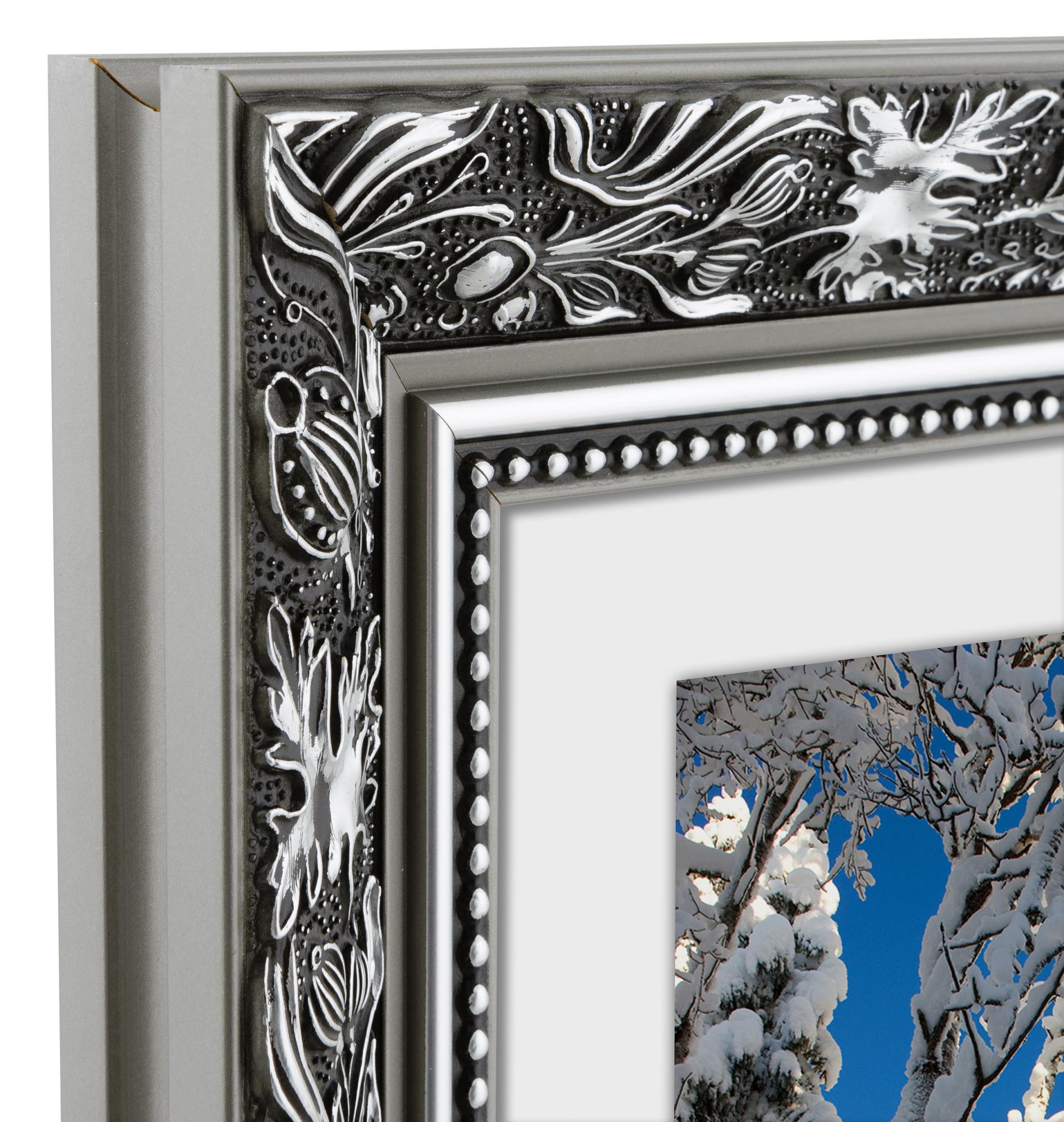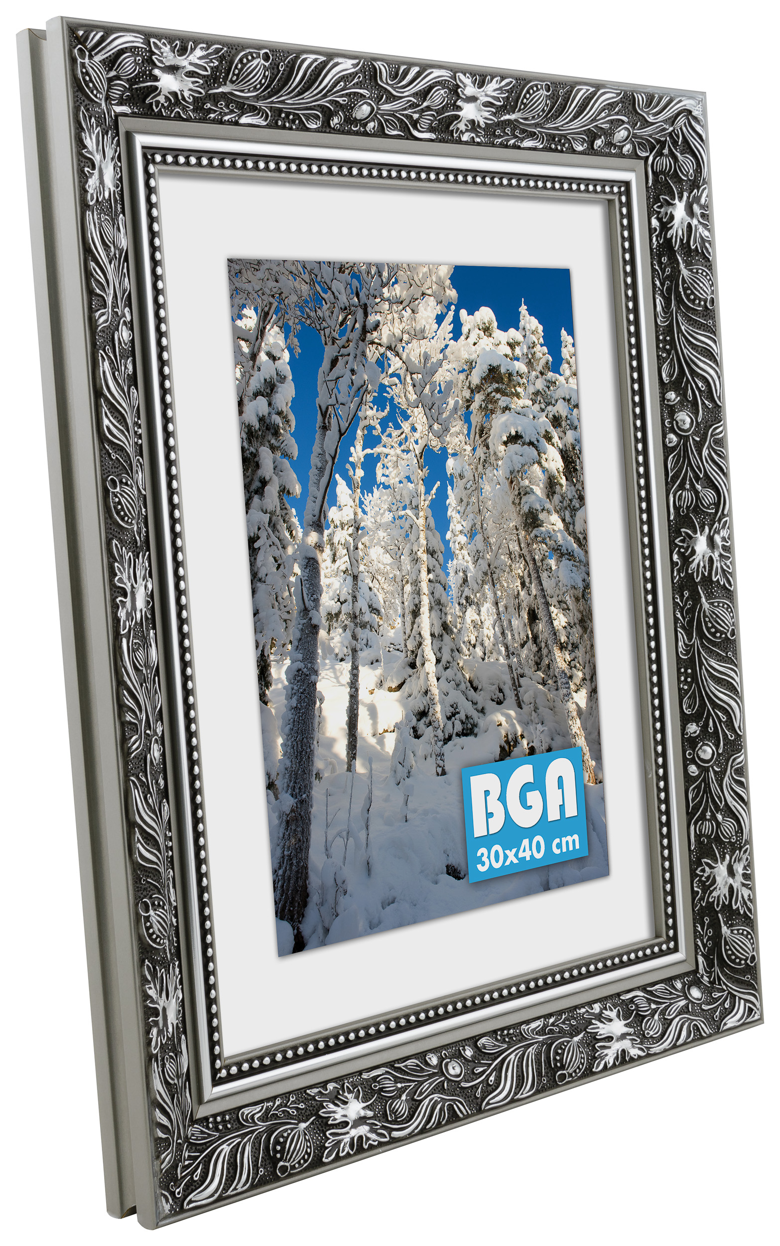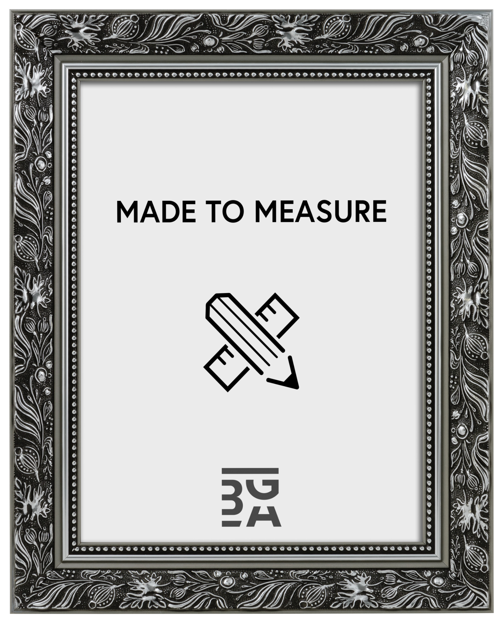 Udělejte stěnu luxusní a zároveň přitáhněte větší pozornost ke svému obrazu! Tento krásný rám má dvojité profilování, které na stěně vypadá velmi pěkně. Okraje jsou zcela stříbrné, zatímco přední strana je černá a má stříbrný vzor s listy a křivolakými tvary. Nejblíže ke sklu probíhá stříbrný okraj a černá partie s perlovým vzorem ve stříbře. Protože je rám vyráběn podle vašich rozměrů, můžete si být jistí, že bude přesně tam, kde jej chcete mít.