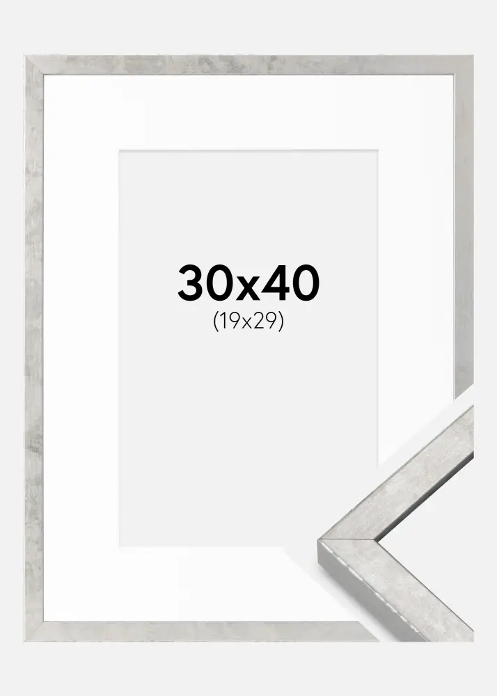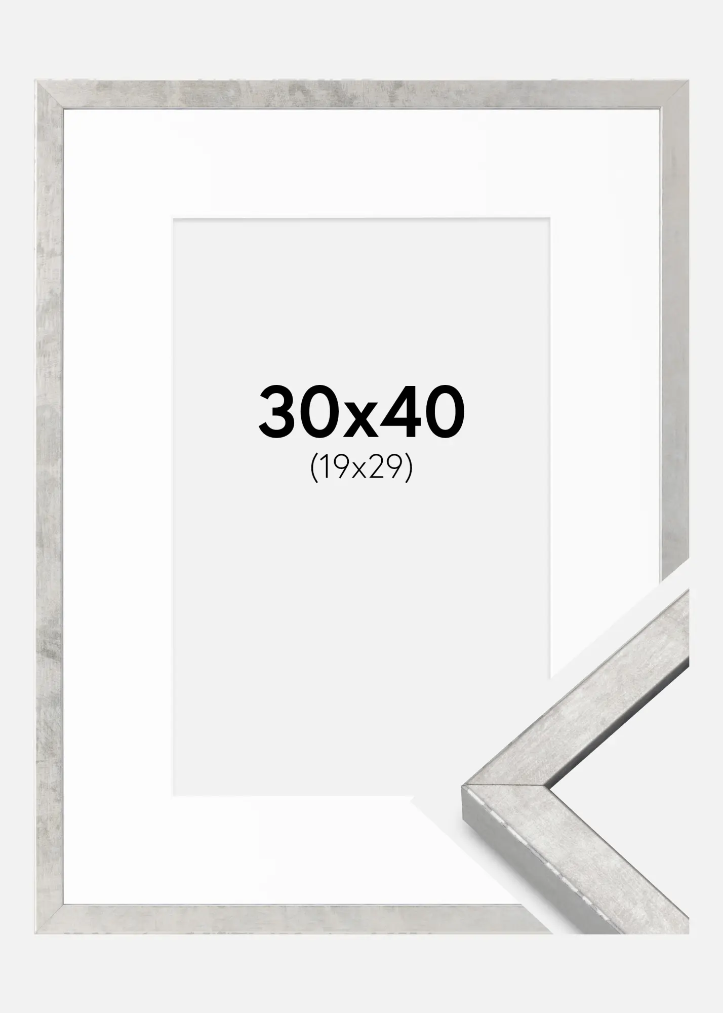 Rám Ares stříbro 30x40 cm - Pasparty Bílý 20x30 cm