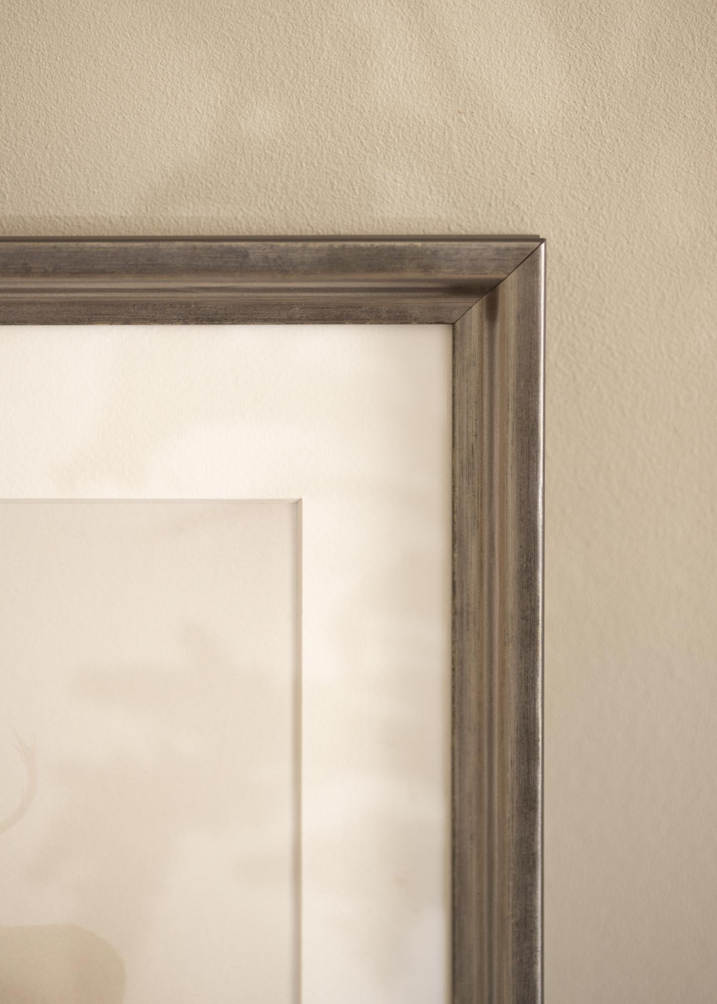 Rám na obrazy v tužkové šedé stříbrné barvě, který oživí vaše portréty. Díky svému příjemnému barevnému tónu je tento rám na míru univerzální a vhodný pro každé prostředí.
