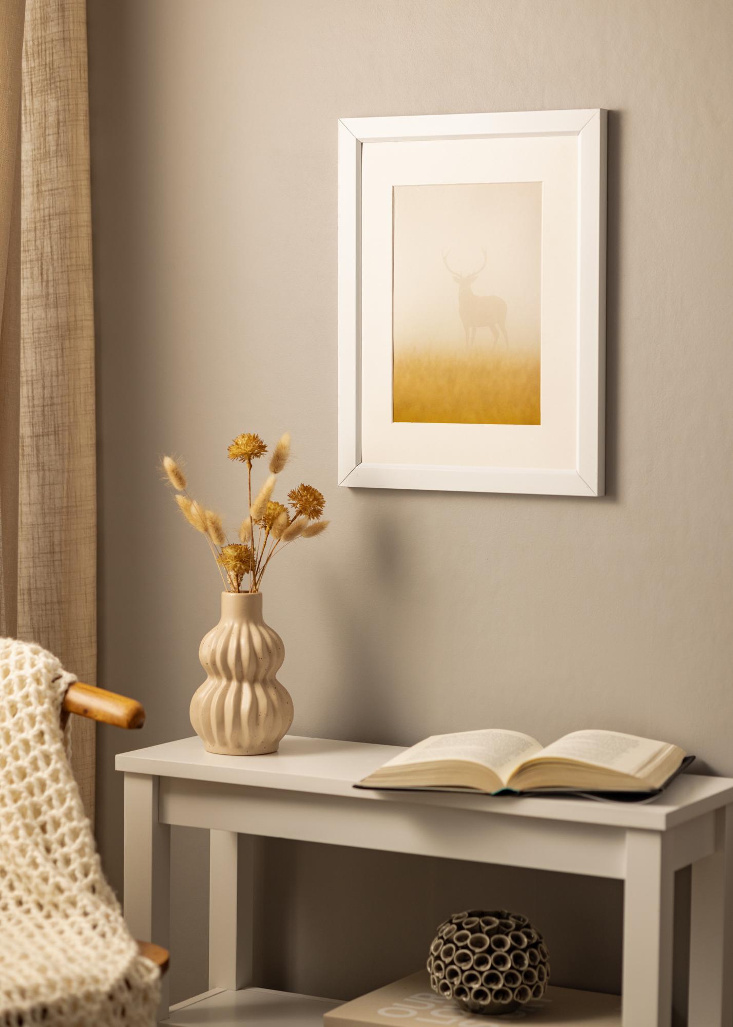 Stylový bílý hliníkový rám s zkoseným vnitřním okrajem, který dodává obrazu elegantní vzhled a hodí se do všech typů interiérů. Bílý rám se hodí ke všem typům obrázků, umožňuje plnou pozornost zaměřit na motiv a zdůrazňuje ho. Nejvíce efektní je to u barevných nebo grafických motivů, které vytvářejí kontrast s bílou barvou. Doporučujeme kombinovat několik různých druhů bílých rámů s motivy na jedno téma na stěně pro obrazy jako výrazný prvek v obývacím pokoji.