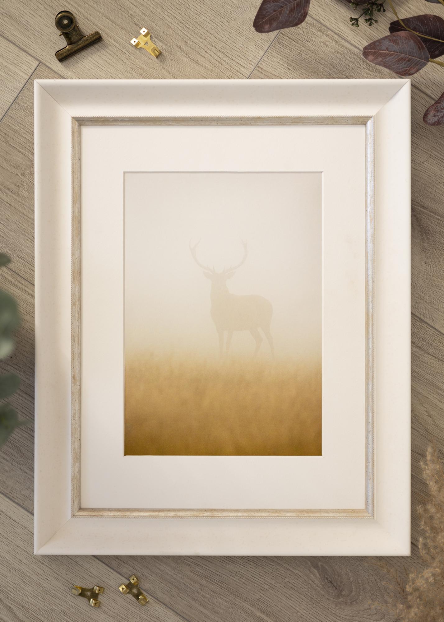 Pevný rám v libovolné velikosti s bílým klasickým profilem. Nejblíže motivu je elegantní stříbrný okraj, který dává rámu extra lesk.