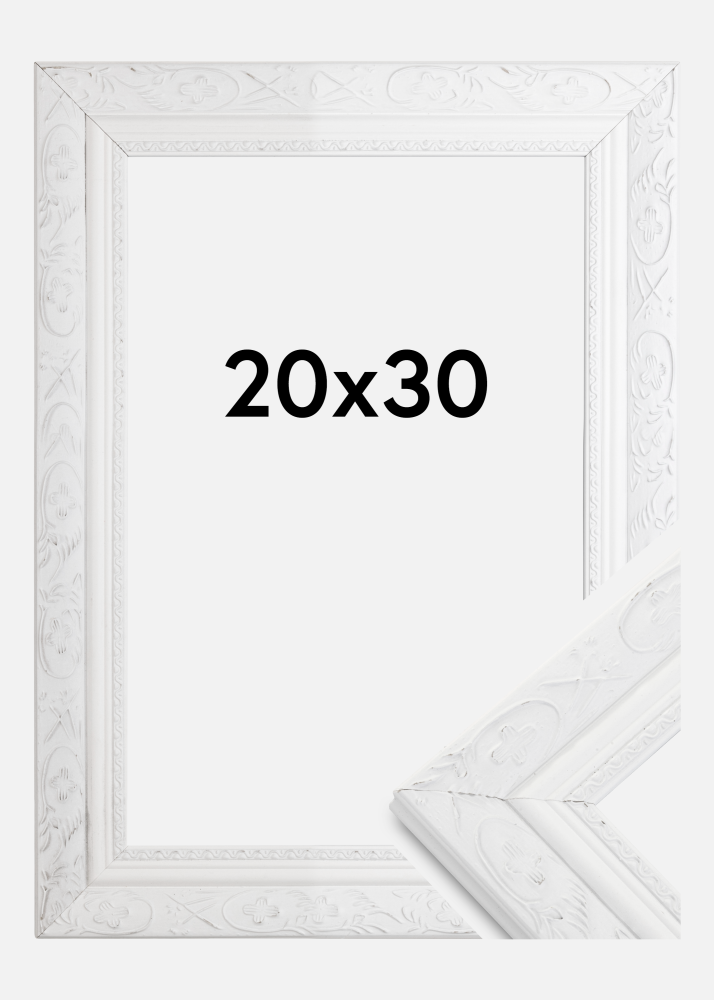 Barock Bílé je nádherný dřevěný rám v retro stylu s krásnými ozdobami. Perfektní, když hledáte široký krásný dřevěný rám ve starobylém stylu. Skvělá volba pro zvětšeniny, které máte obzvlášť rádi.